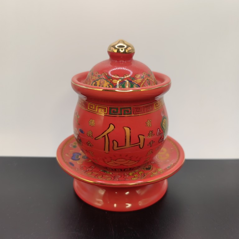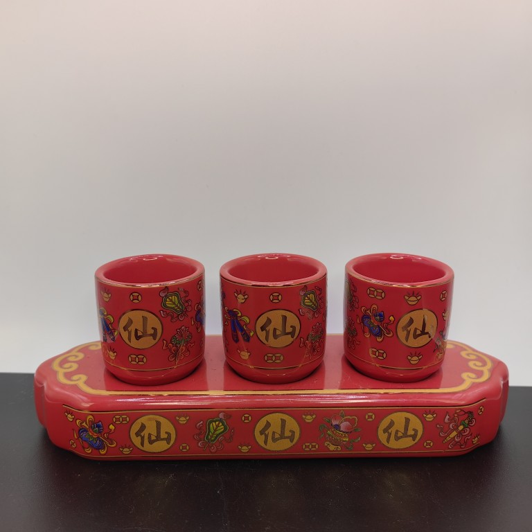 仙家香炉碗水杯酒杯堂口酒盅供果盘摆盘供碗红色八吉祥高脚圣水杯