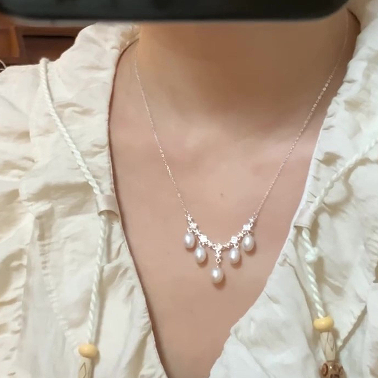 水滴珍珠流苏项链女法式温柔气质微笑锁骨链送礼物2026年新款颈链