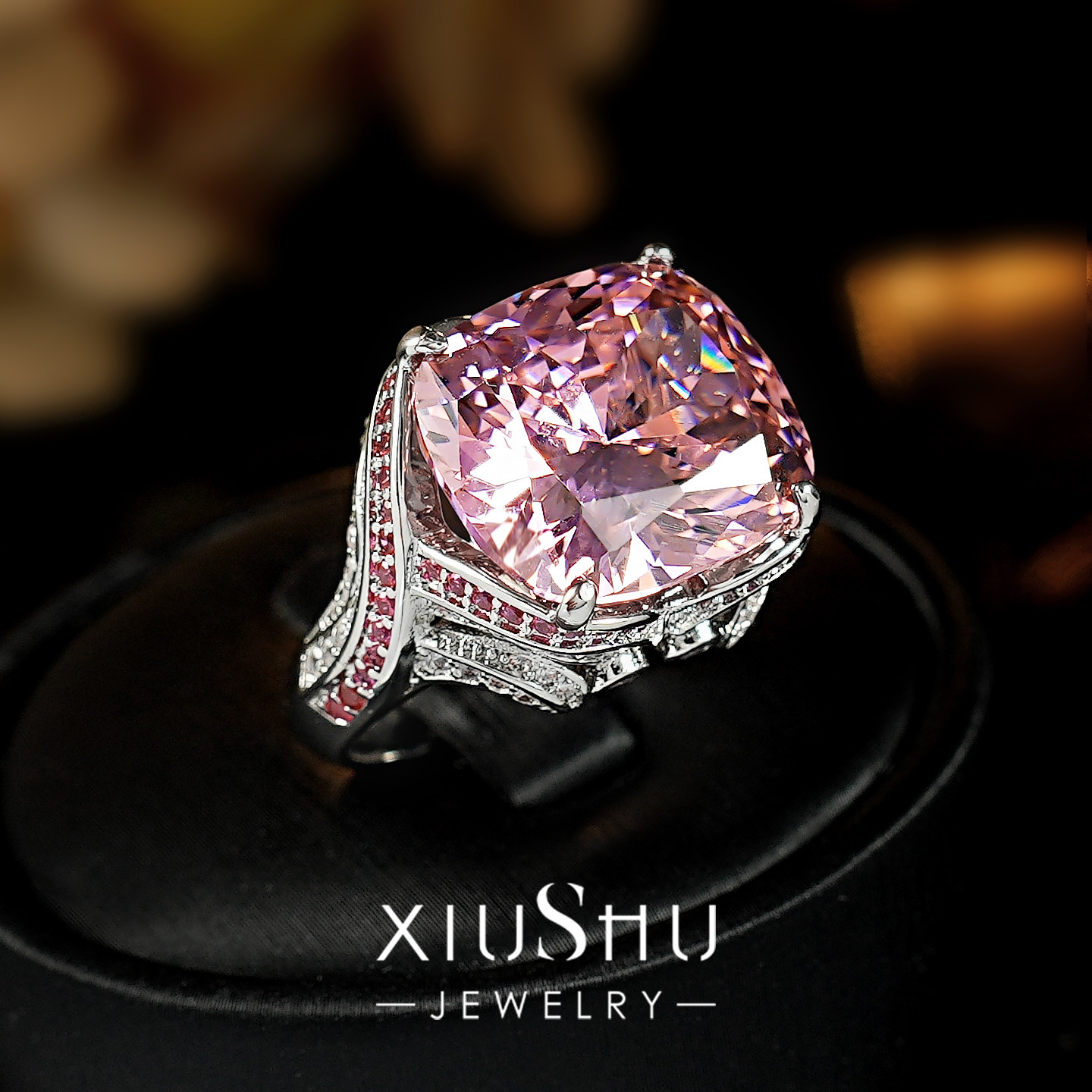 高托重工大克拉干枯玫瑰色奢华满钻彩宝款食指戒高级感晚宴珠新品