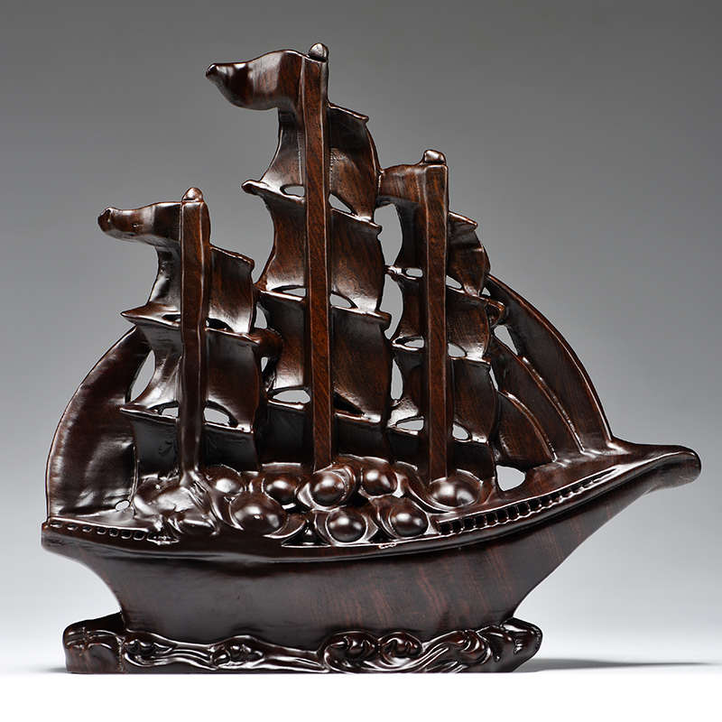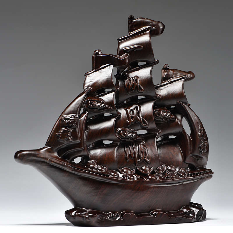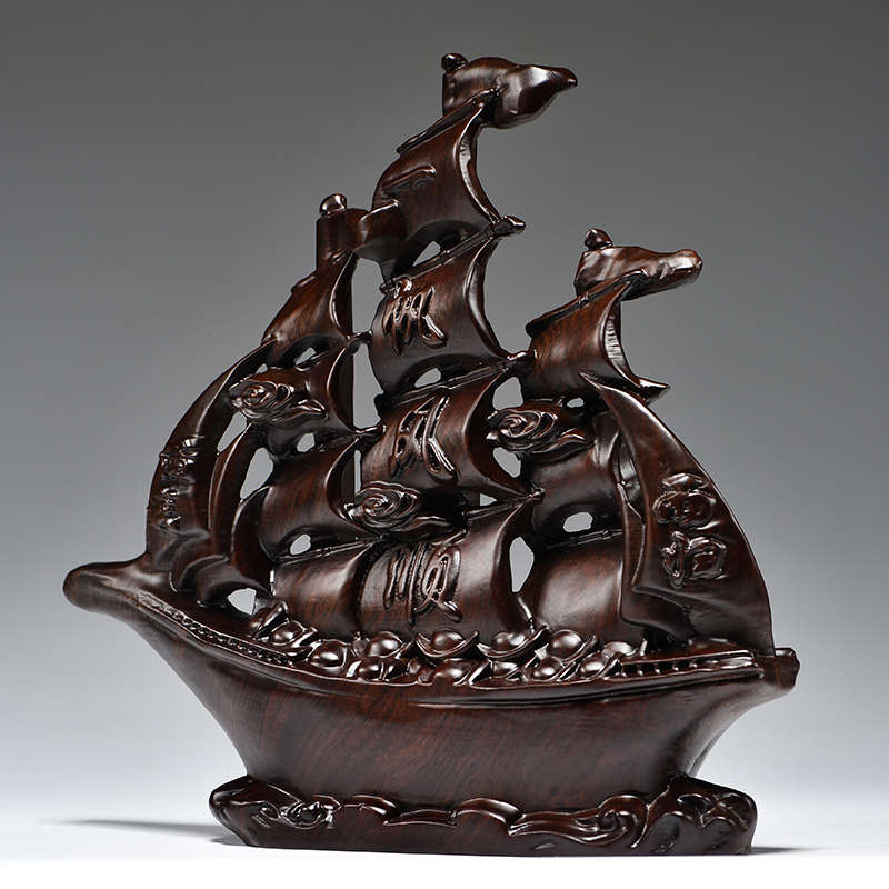 黑檀实木雕一帆风顺帆船摆件公司开业送礼品客厅办公室船模型装饰