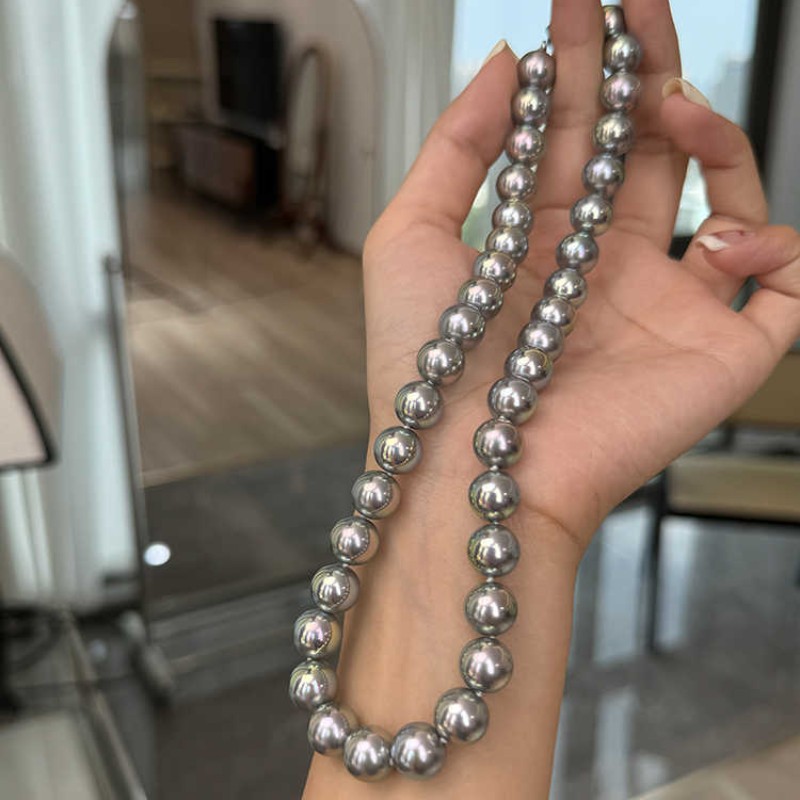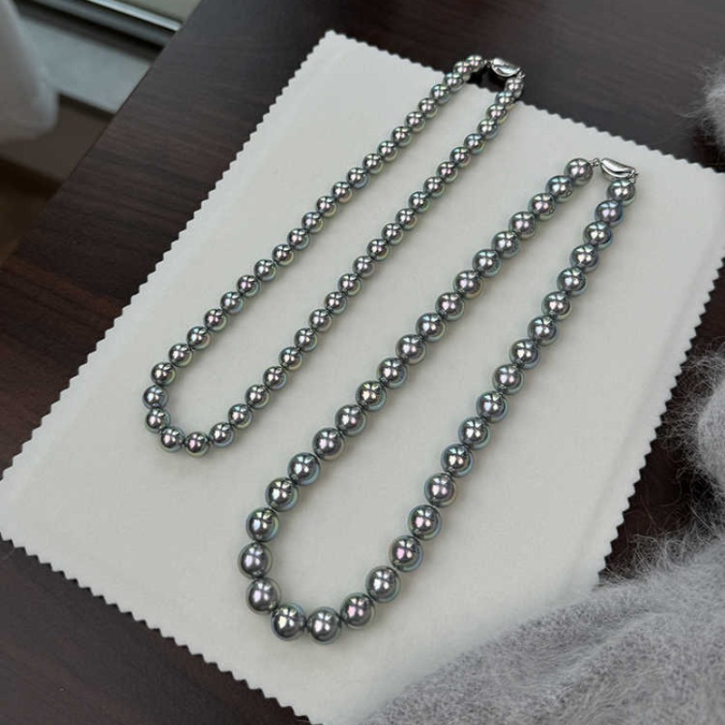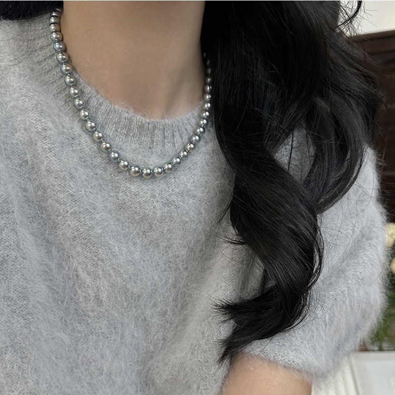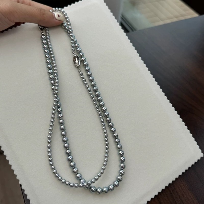 强光多麻灰色仿珍珠项链女款秋冬百搭锁骨链高级感时尚气质毛衣链