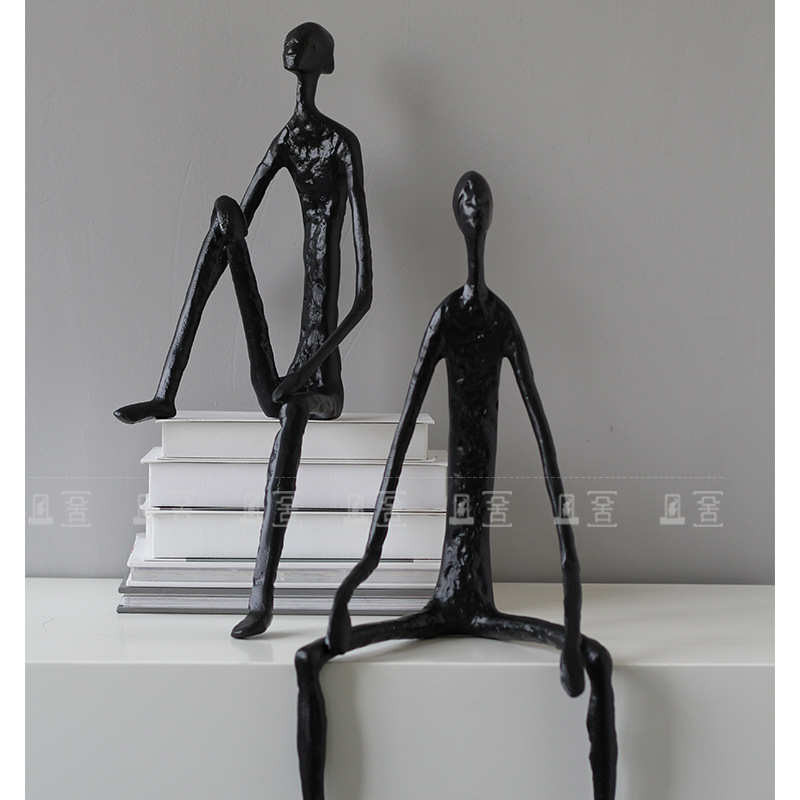 现代简约铸铁黑色抽象翘脚坐姿人物雕塑客厅玄关电视柜书房摆件