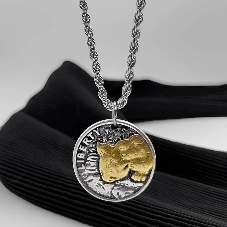 WHYBLUE 小众设计猫咪喝水项链男百搭圆硬币复古个性双面挂坠配饰