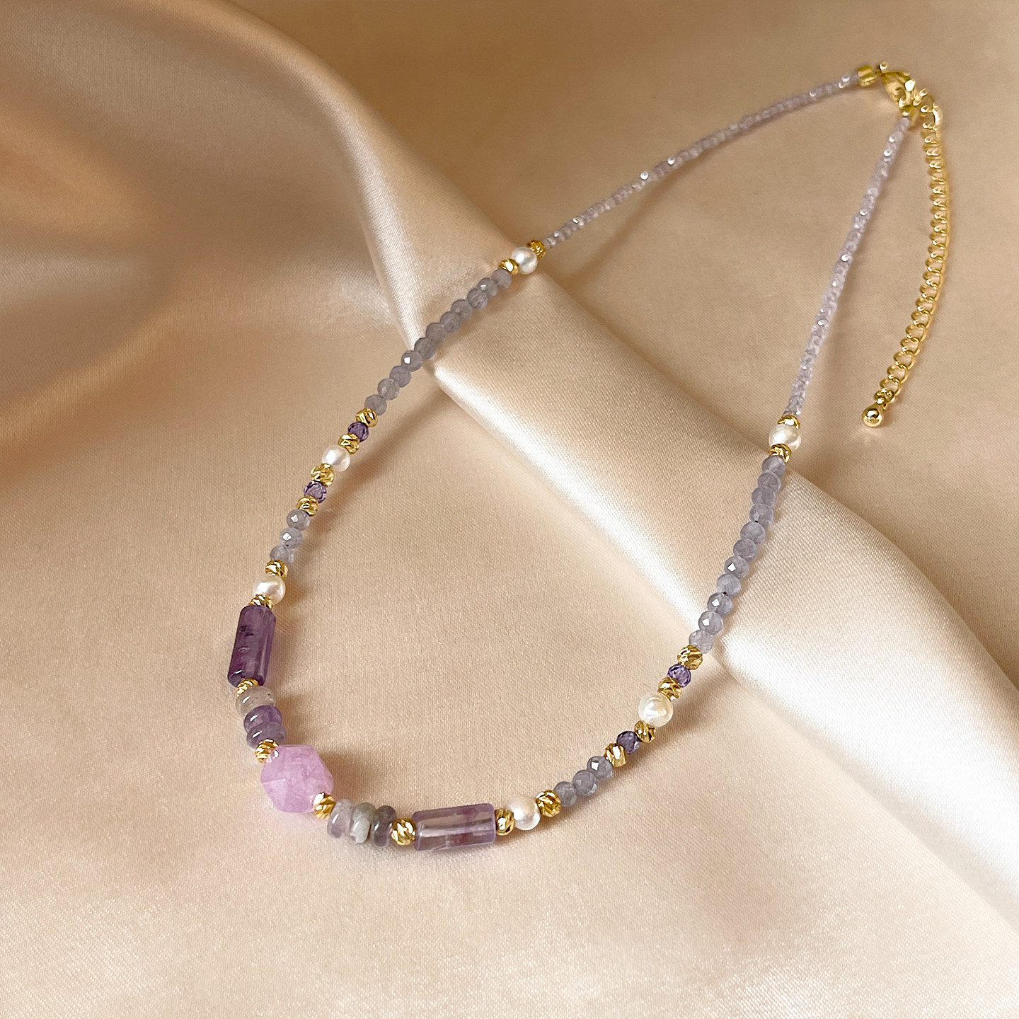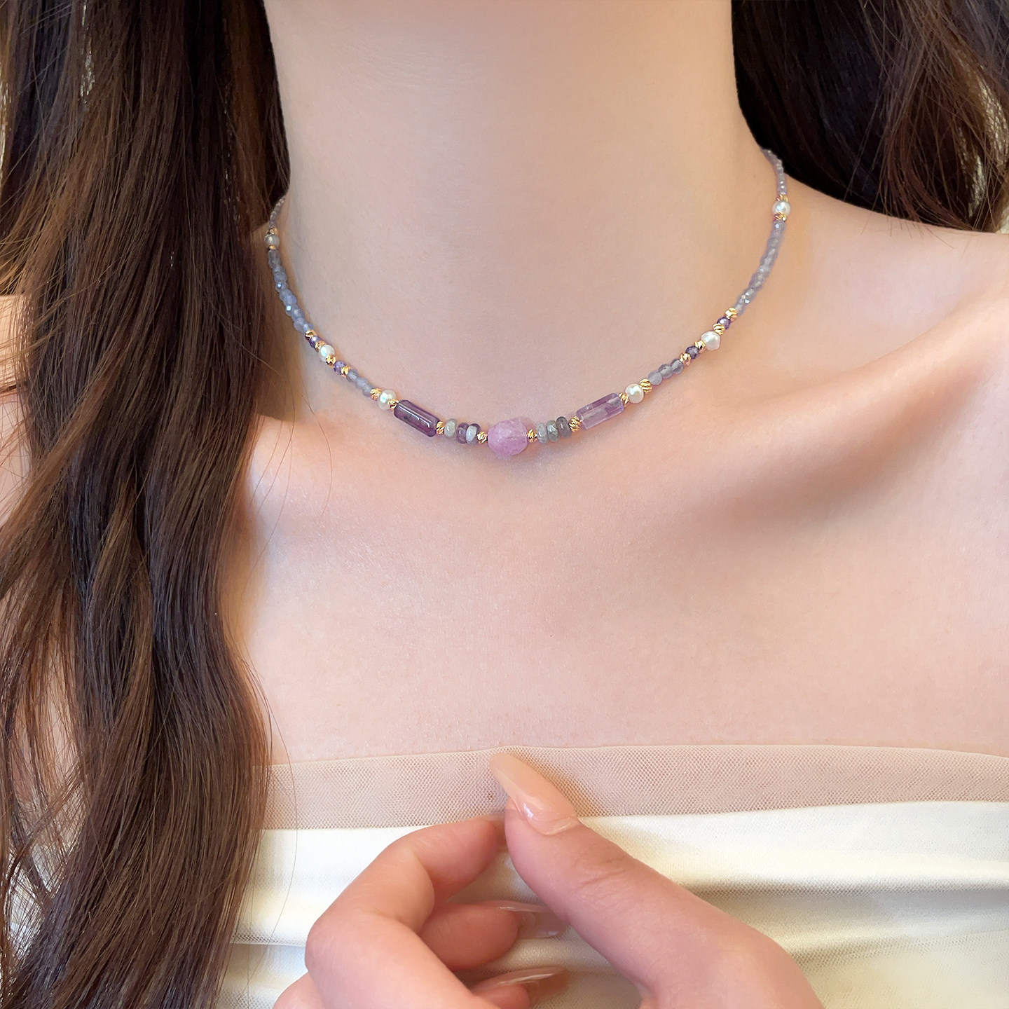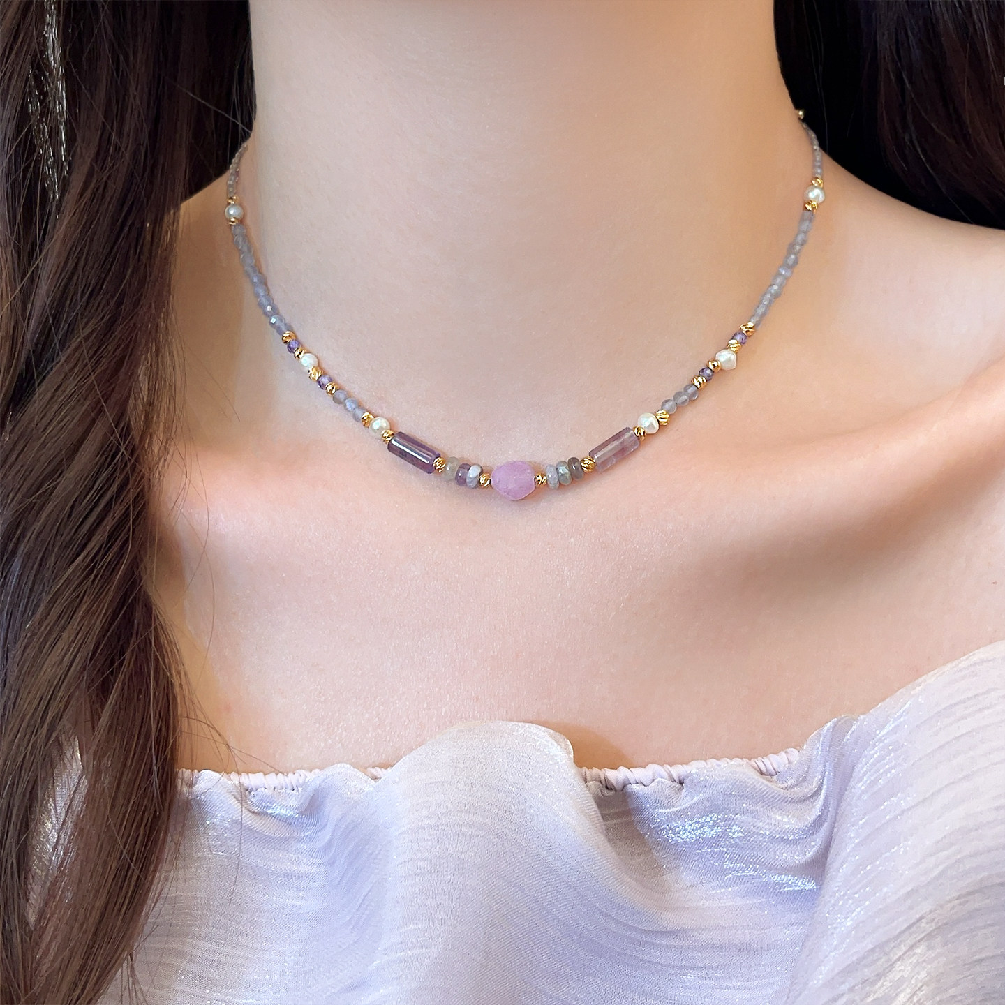 不规则紫色水晶串珍珠项链女2026新款海边配饰高级感轻奢小众颈链