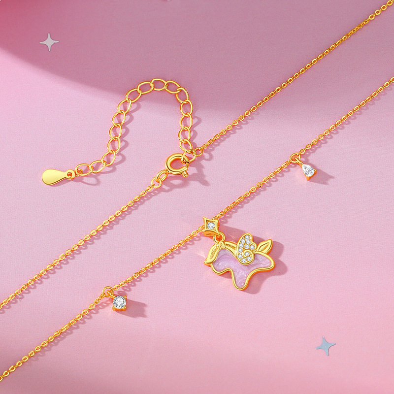 飞天小马项链女S925银马年本命年生肖马锁骨链吊坠珐琅生日礼物
