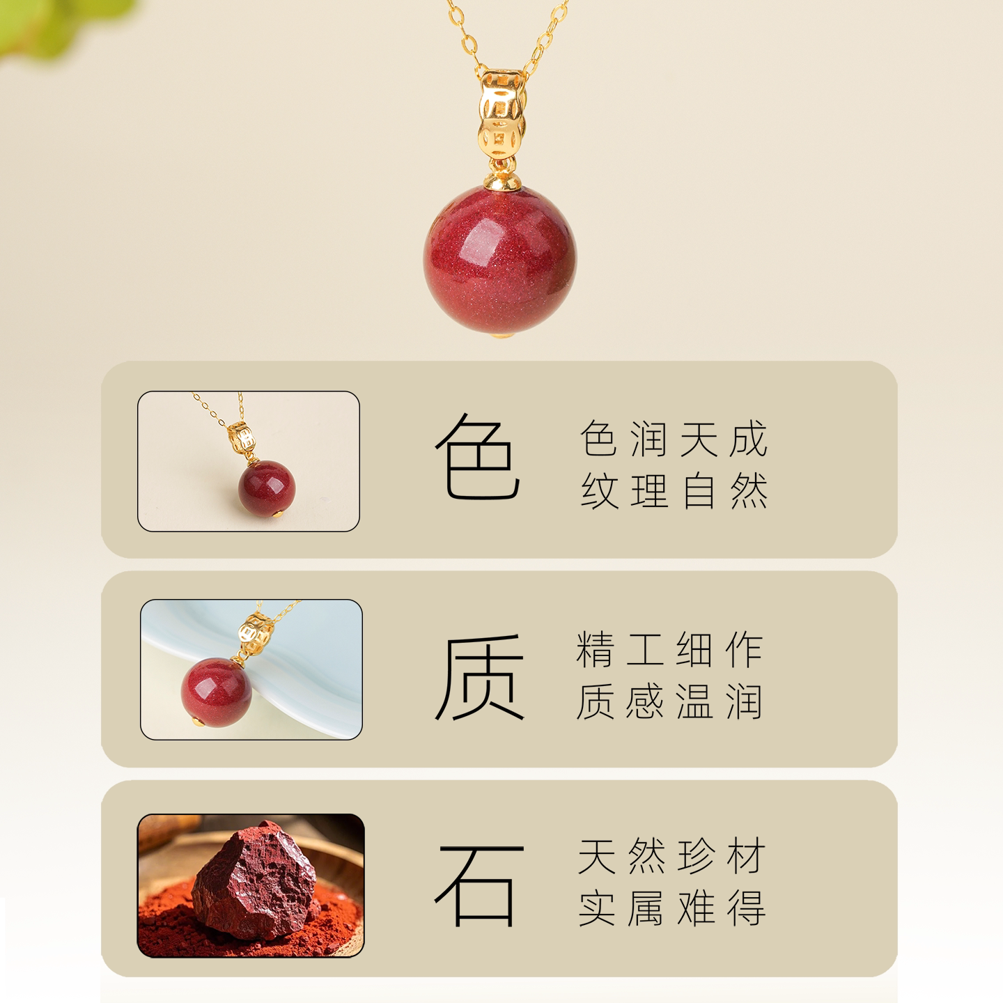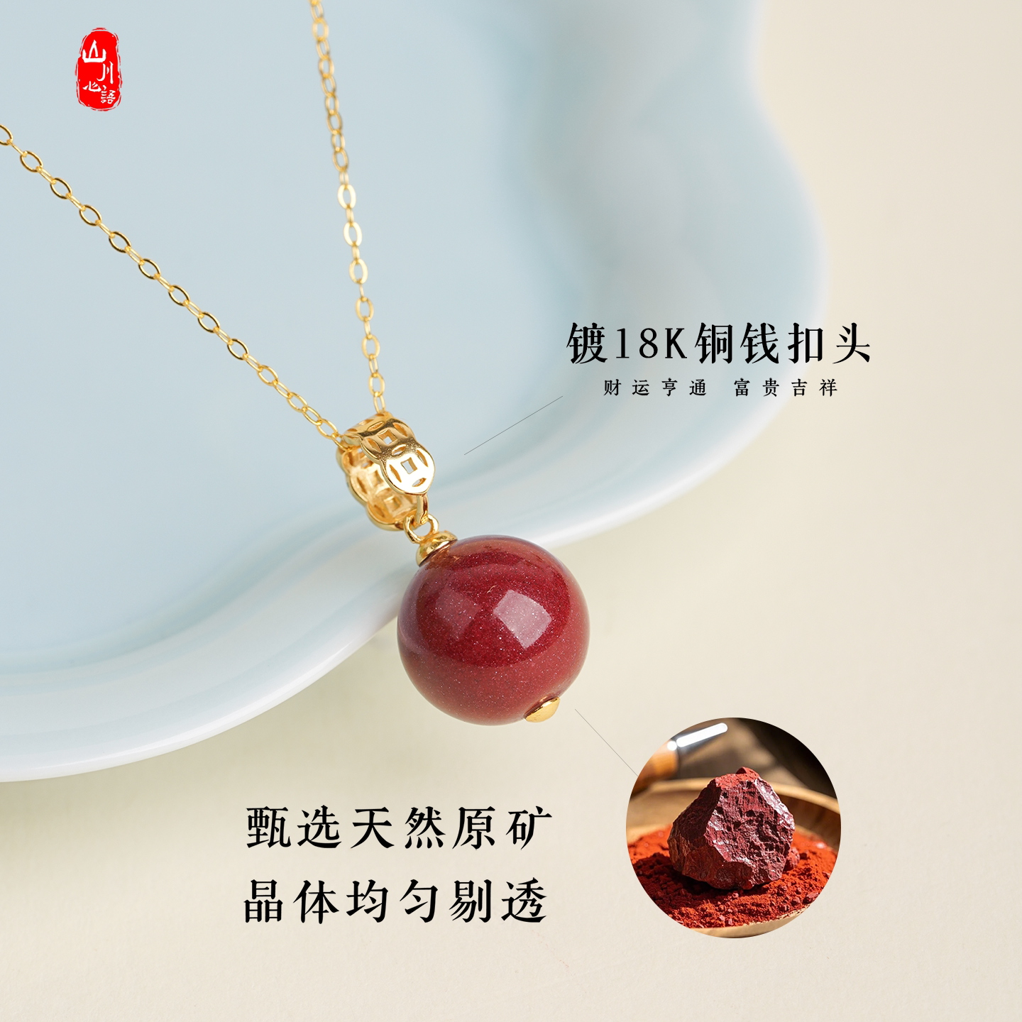红色项链天然原矿朱砂吊坠女款毛衣链秋冬马年本命年纯银锁骨链I