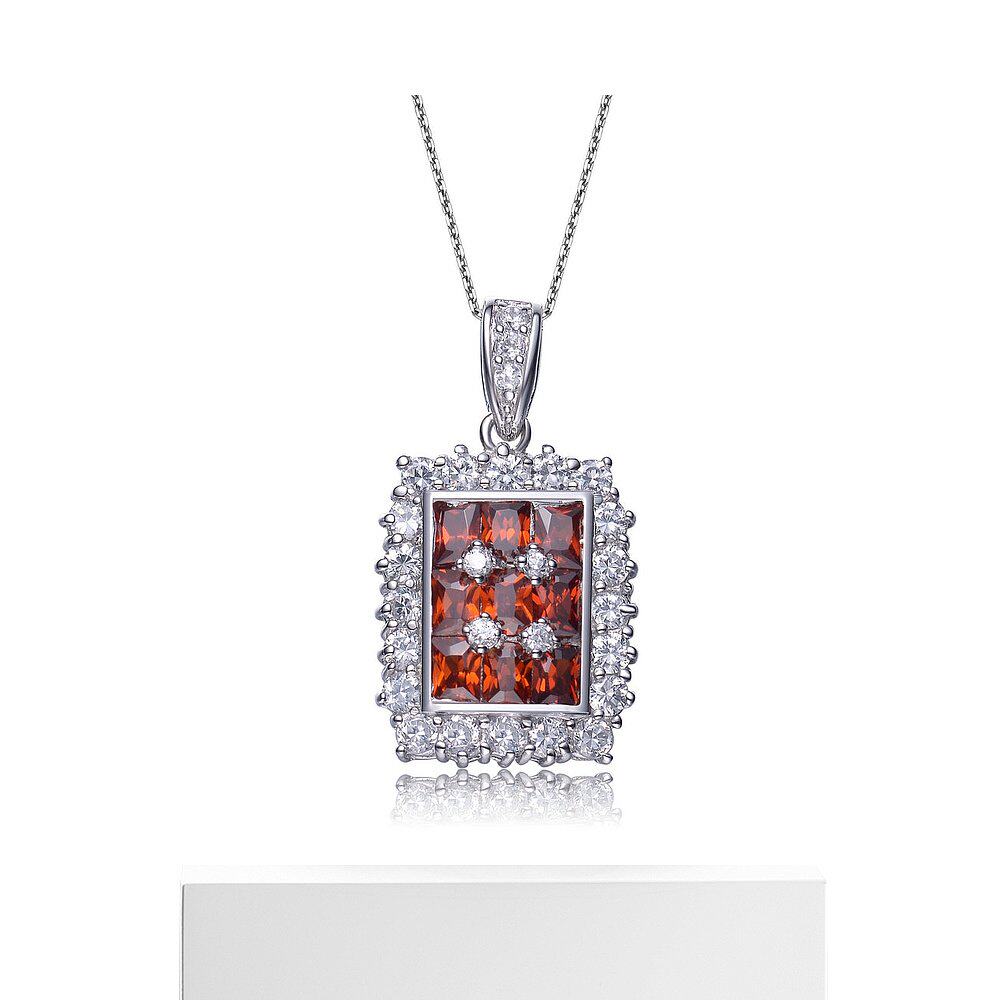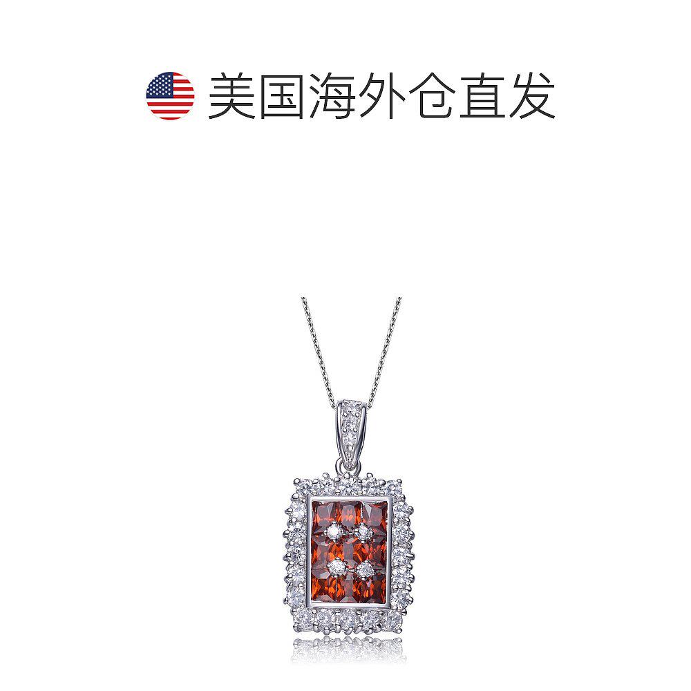自营 GENEVIVE 纯银红宝石立方氧化锆长方形吊坠项链 - 红色 美国