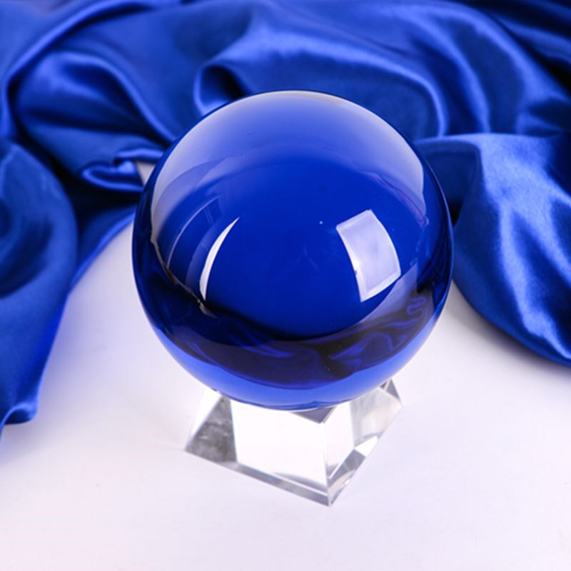蓝色水晶球摆件玻璃透明圆球家居客厅饰品办公桌书桌玄关摆件送礼
