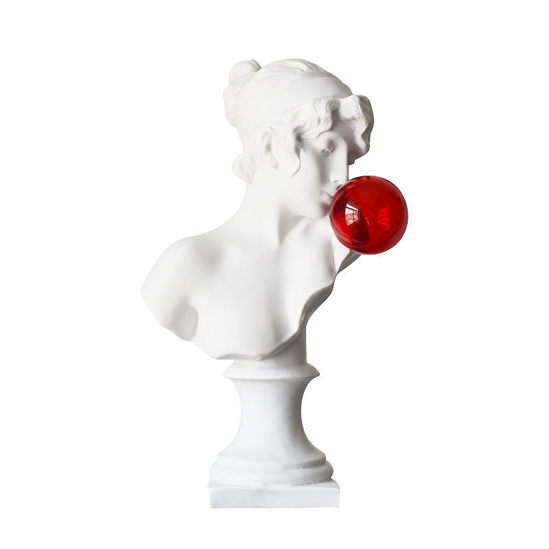 红色吹泡泡女孩雕像头像北欧女神法式玄关摆件软装饰艺术抽象雕塑
