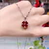 S925纯银红锆石四叶草锁骨链日韩简约百搭连连好运镶钻嘴唇项链女