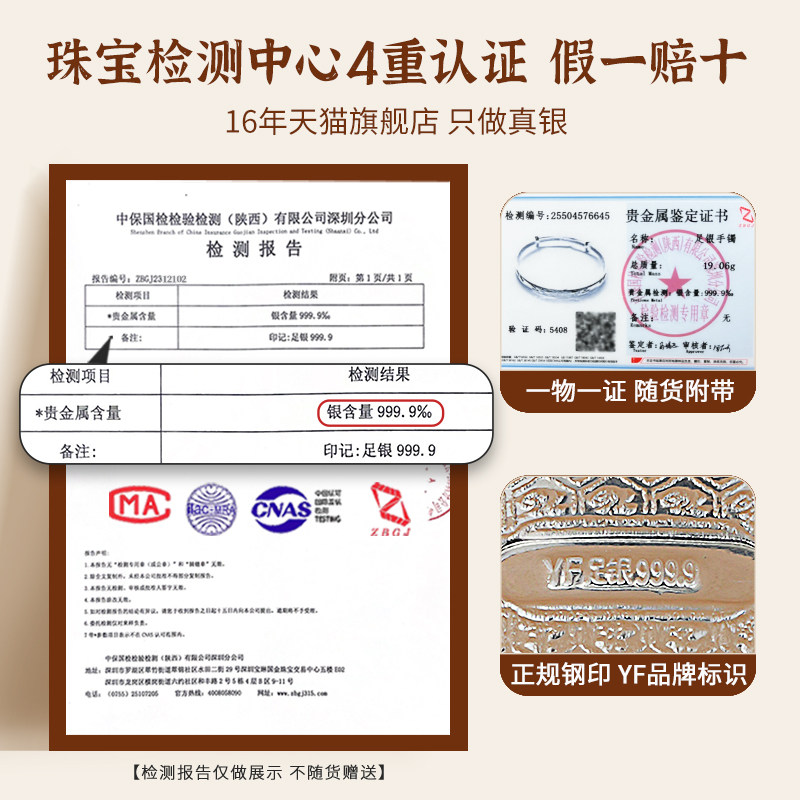 龙凤银手镯妈妈款女9999纯实心银镯子老人奶奶生日三八妇女节礼物