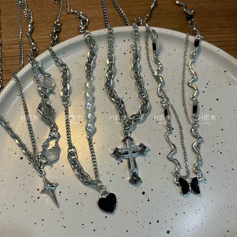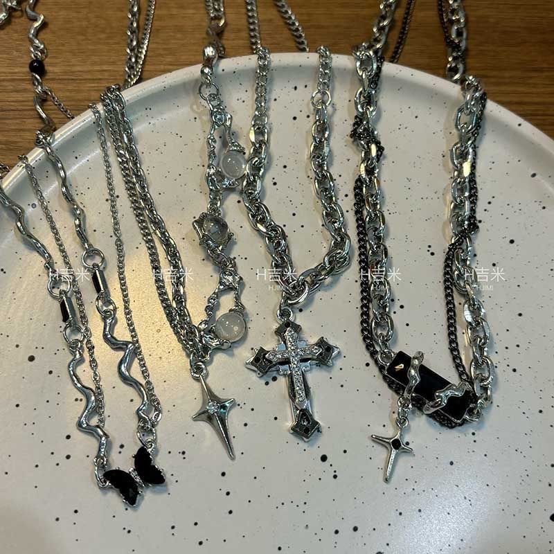 高颜值潮款项链辣妹毛衣合集黑色设计小众蝴蝶十字架嘻哈百搭款