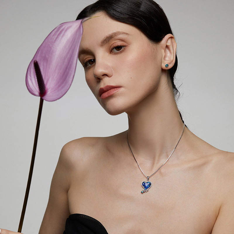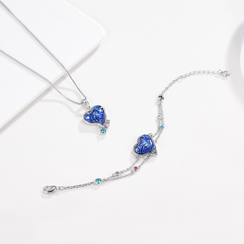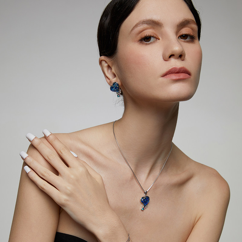 伊泰莲娜项链女蓝色爱心吊坠克莱茵蓝锁骨链精致小众设计感配饰