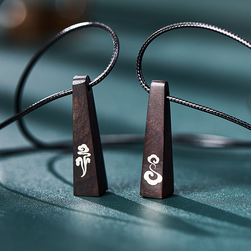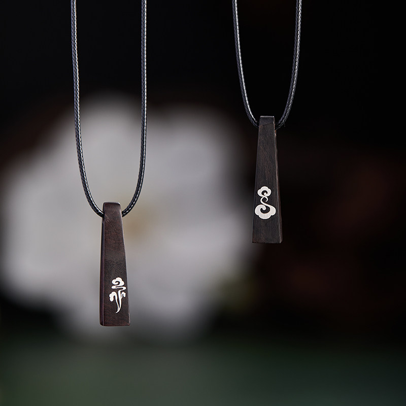 祥云~原创国风饰品檀木项链女复古999银祥云纹样长款毛衣链配饰