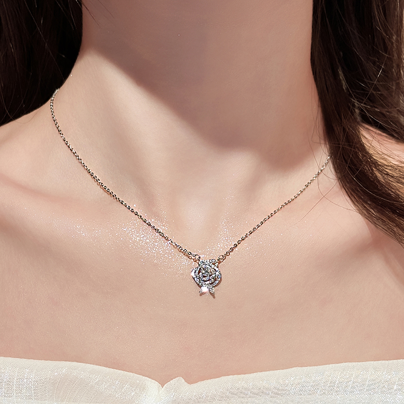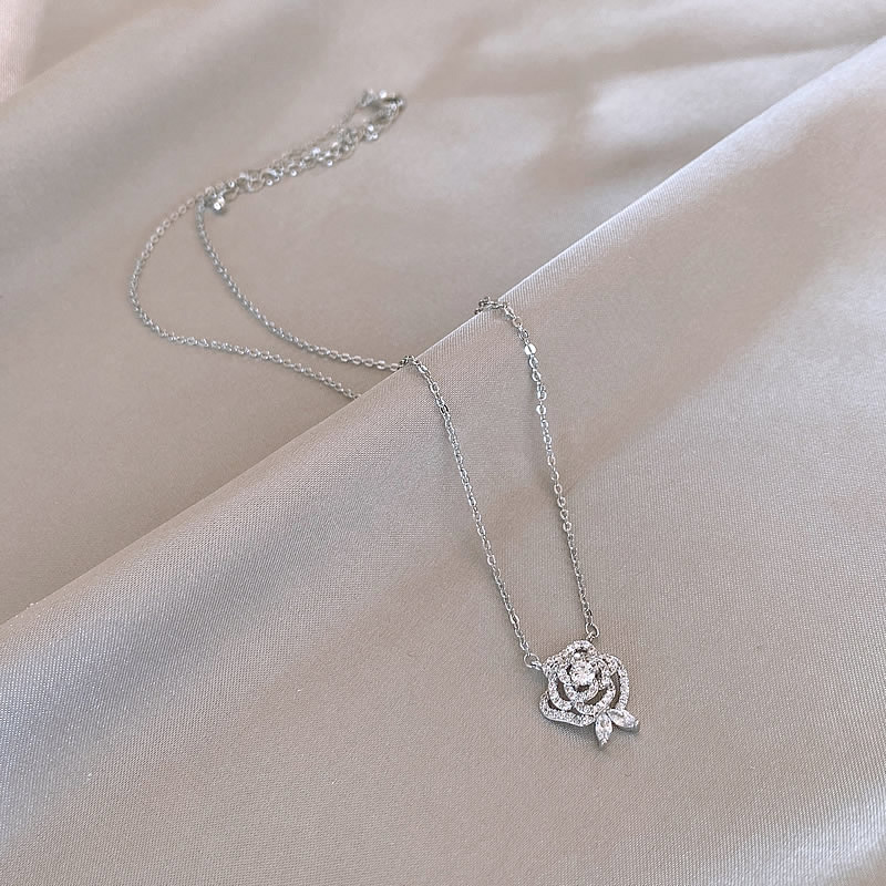 银色满钻镂空玫瑰花项链配裙子女2025新款锁骨链轻奢小众颈链配饰