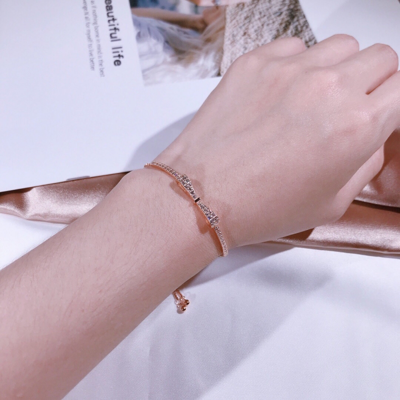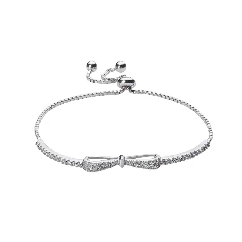 18K白金莫桑石满钻蝴蝶结可调节手链纯银女简约气质时尚温柔精致