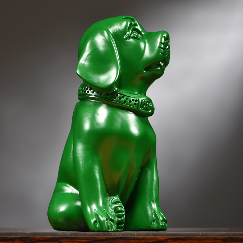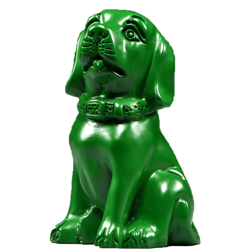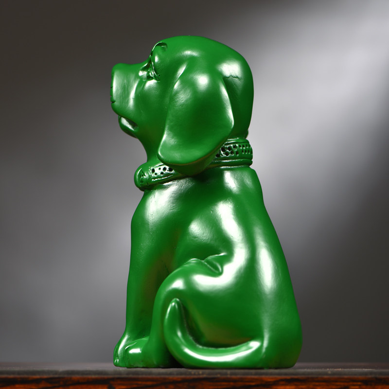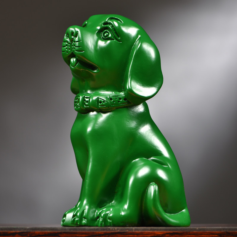 绿色木雕狗摆件实木十二生肖狗家居客厅电视柜办公桌面装饰工艺品