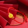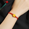 老庙黄金足金花开富贵立体浮雕编织红手绳手链3D经典时尚女士礼物