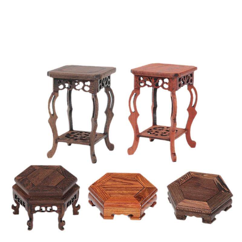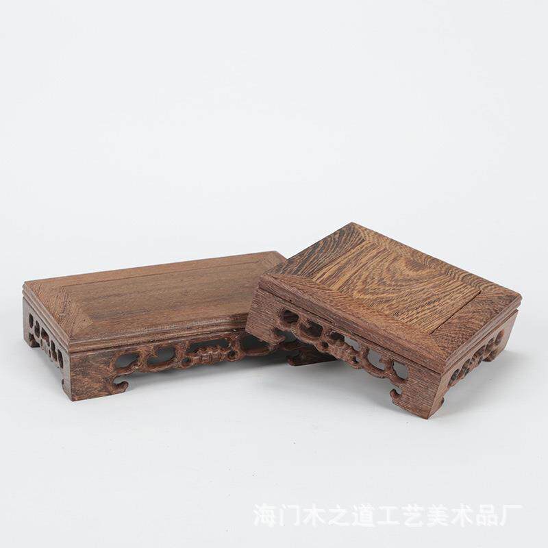红木玉器摆件盆栽小底座鸡翅木紫砂壶绿植装饰绿萝微型长方托架子