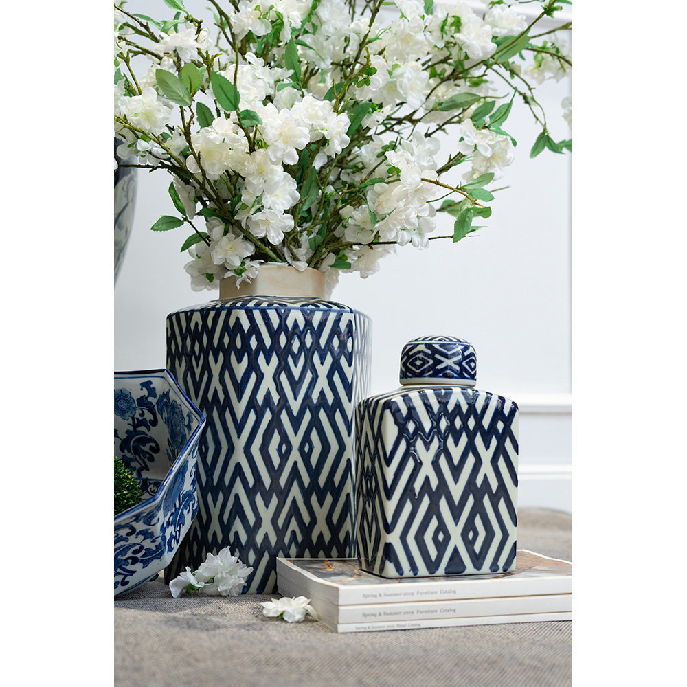 AB HOUSE美国家居设计师青花瓷样板房新中式纹样客厅玄关花器摆件