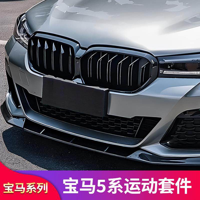 适用宝马五5系改装前唇前铲中网黑色格栅侧裙尾翼前包围黑化套件