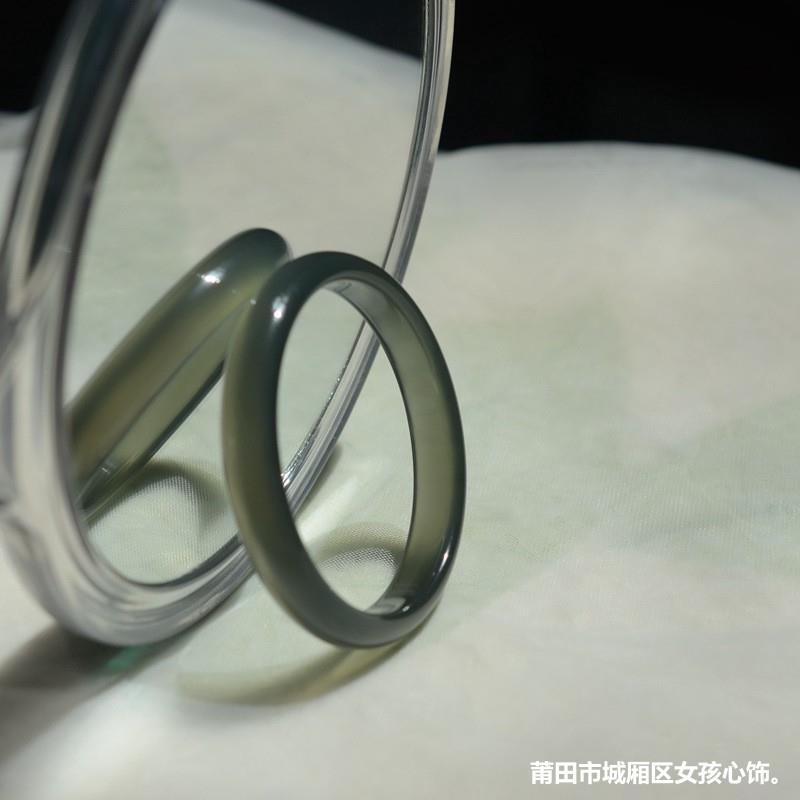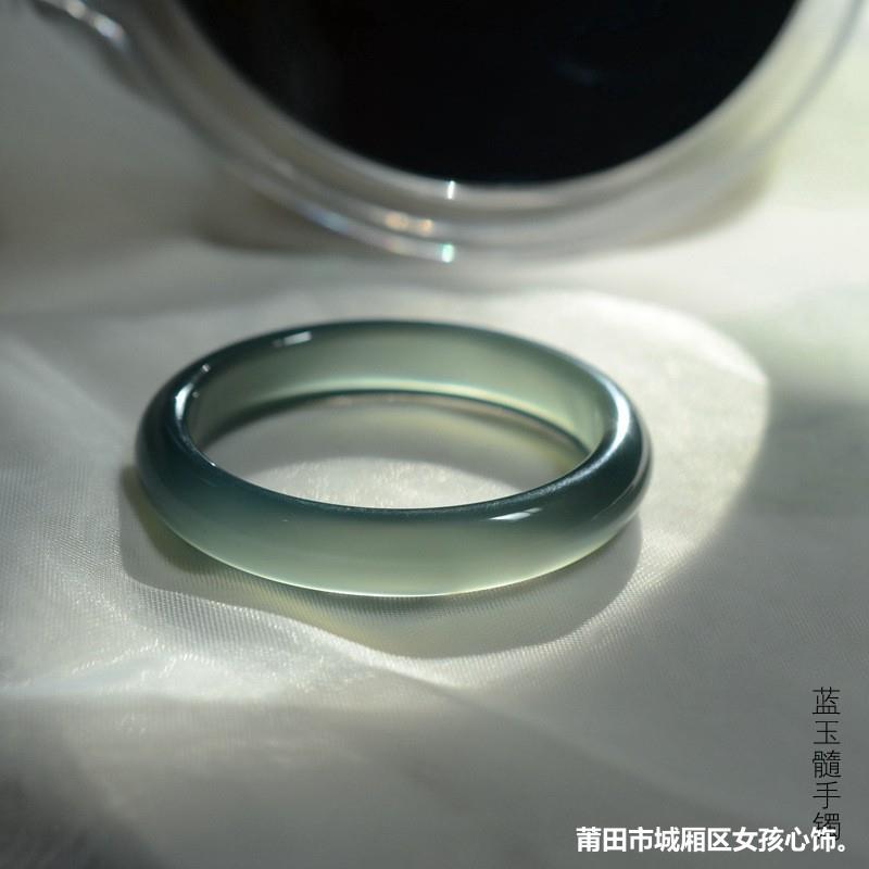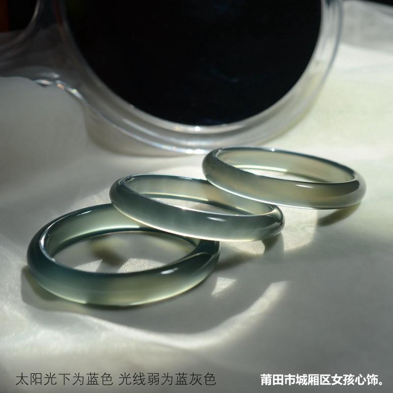 2025玉髓蓝色手镯正圈库里蓝玛瑙镯子蓝灰色玛瑙手镯国风配饰冰透