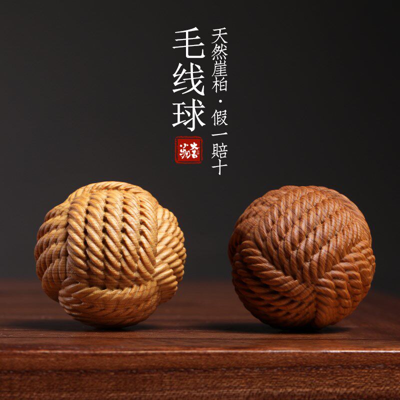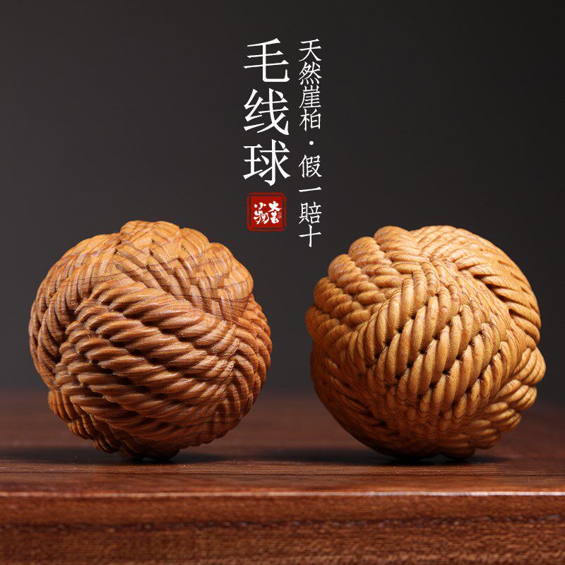 天然崖柏木雕毛线球保健球创意文玩按摩球盘玩手把件桌面小摆件