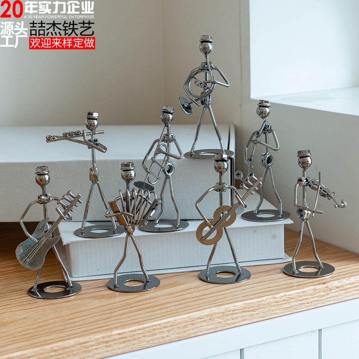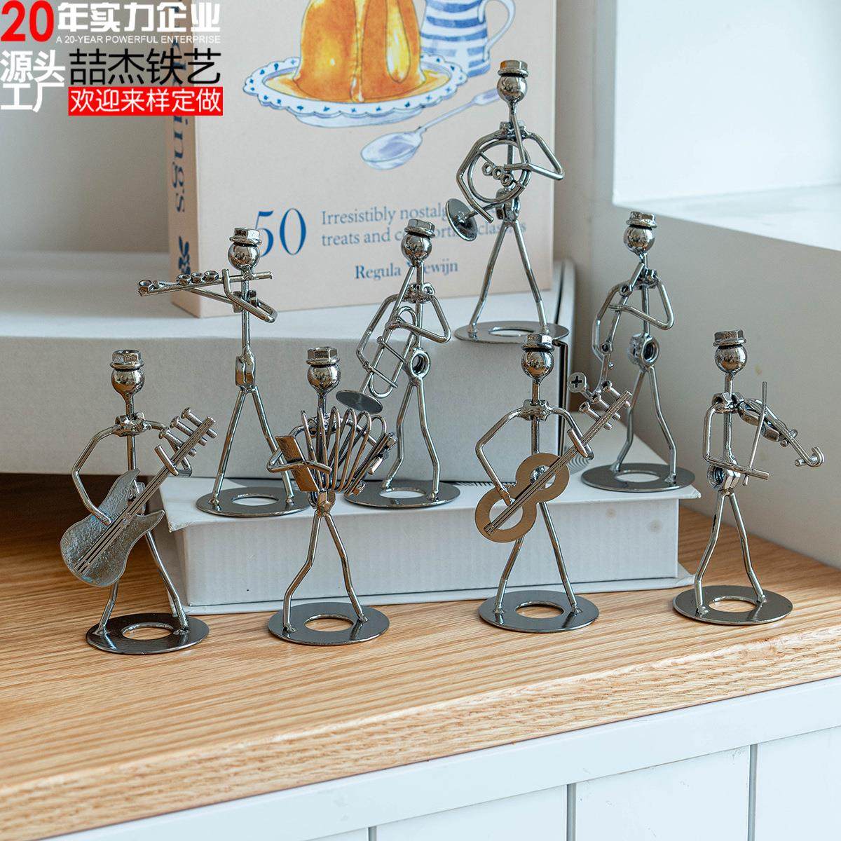 创意铁人乐队摆件家居桌面金属铁艺小铁人男复古装饰工艺品