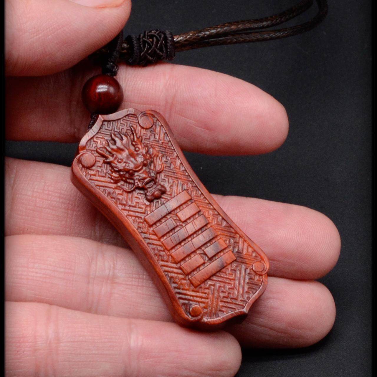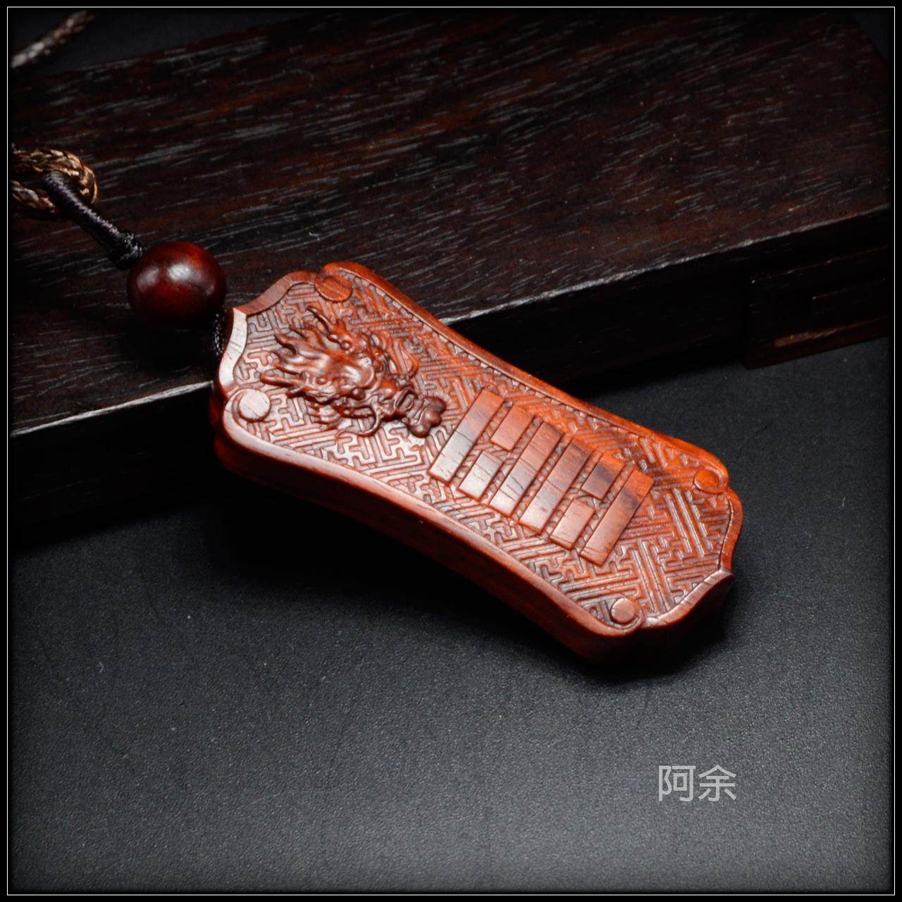 小叶紫檀雕刻国风龙头项链吊坠补缺五行金木水火土阿余原创