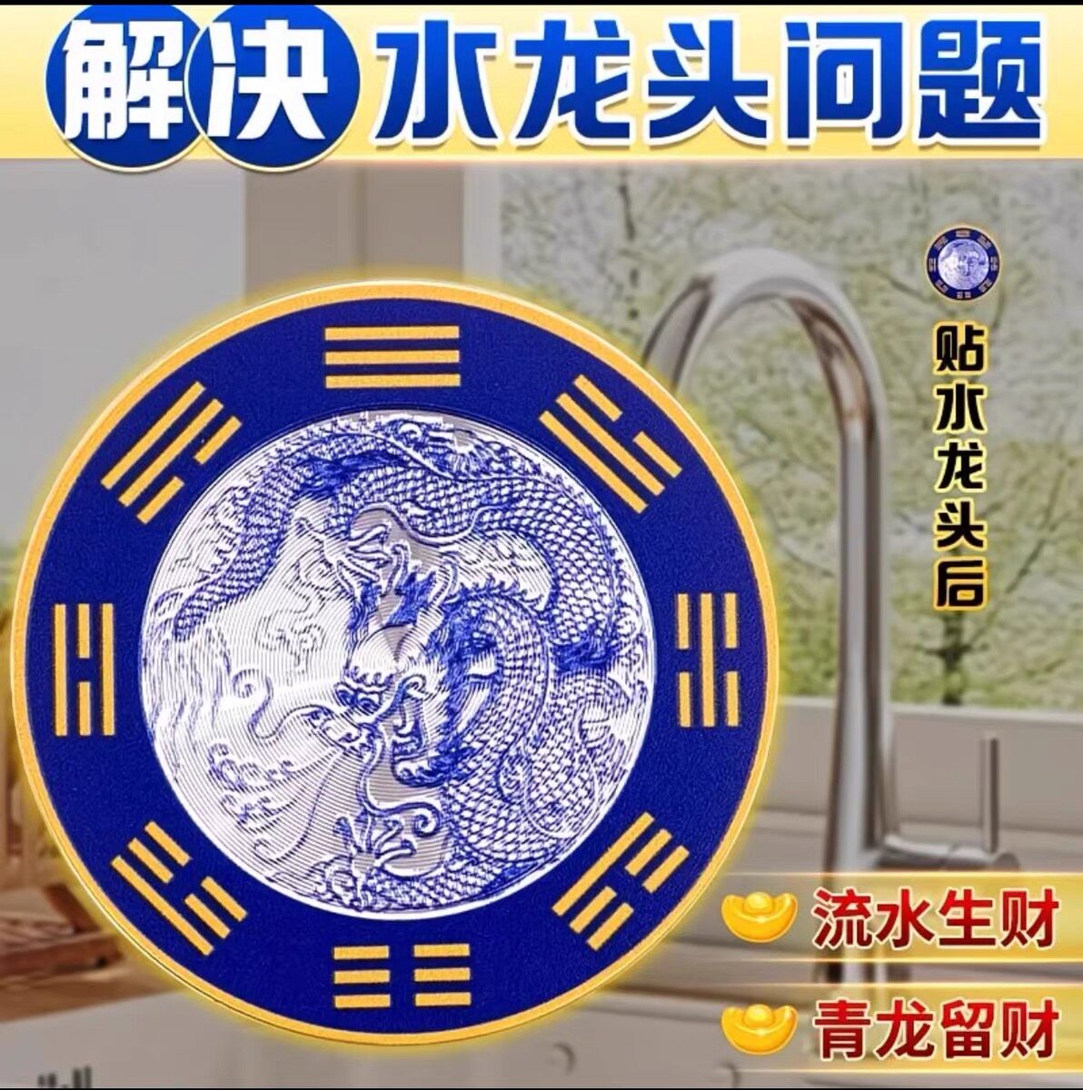 【流水生财】青龙贴水龙头上大吉厨房牌靠窗自粘式洗衣机合金贴