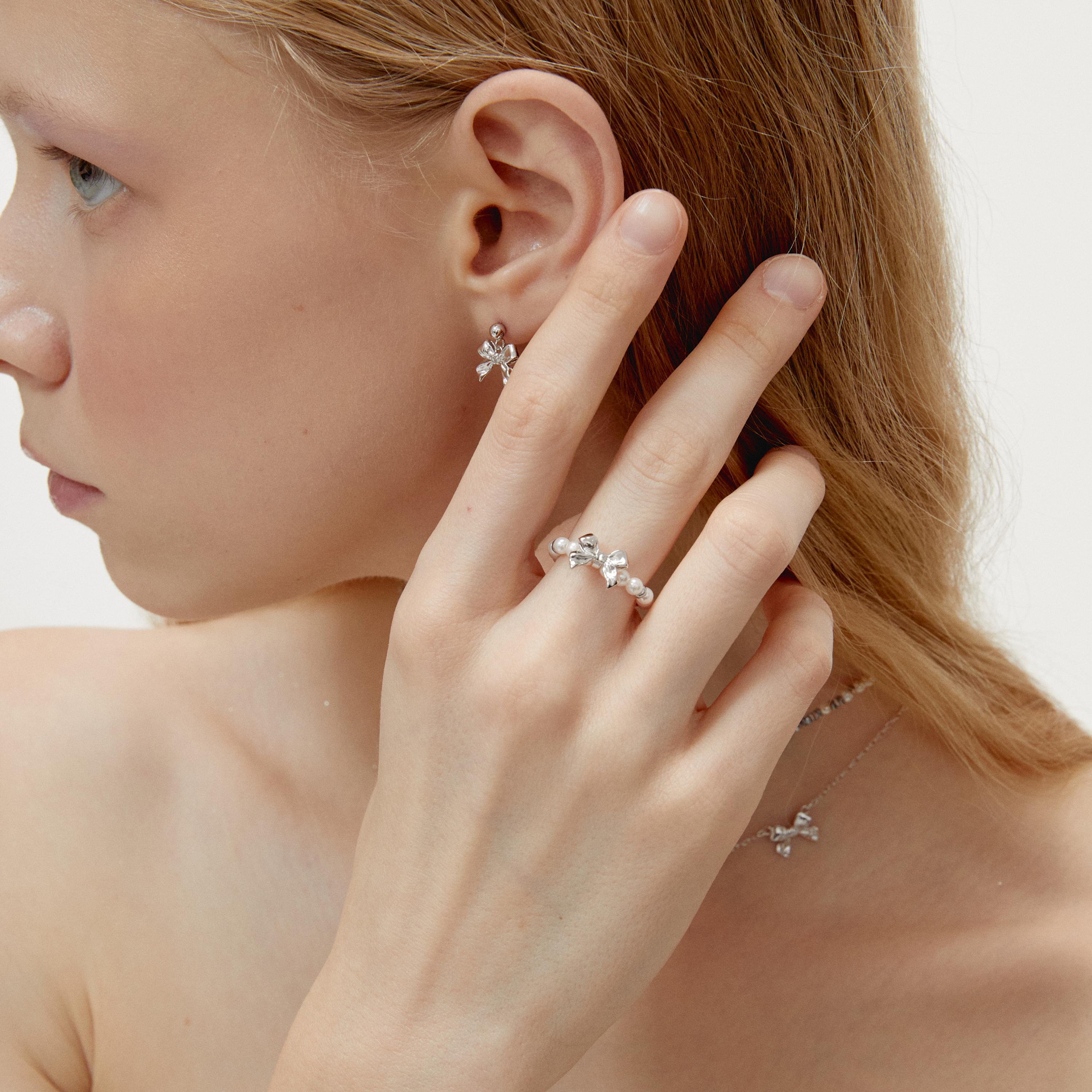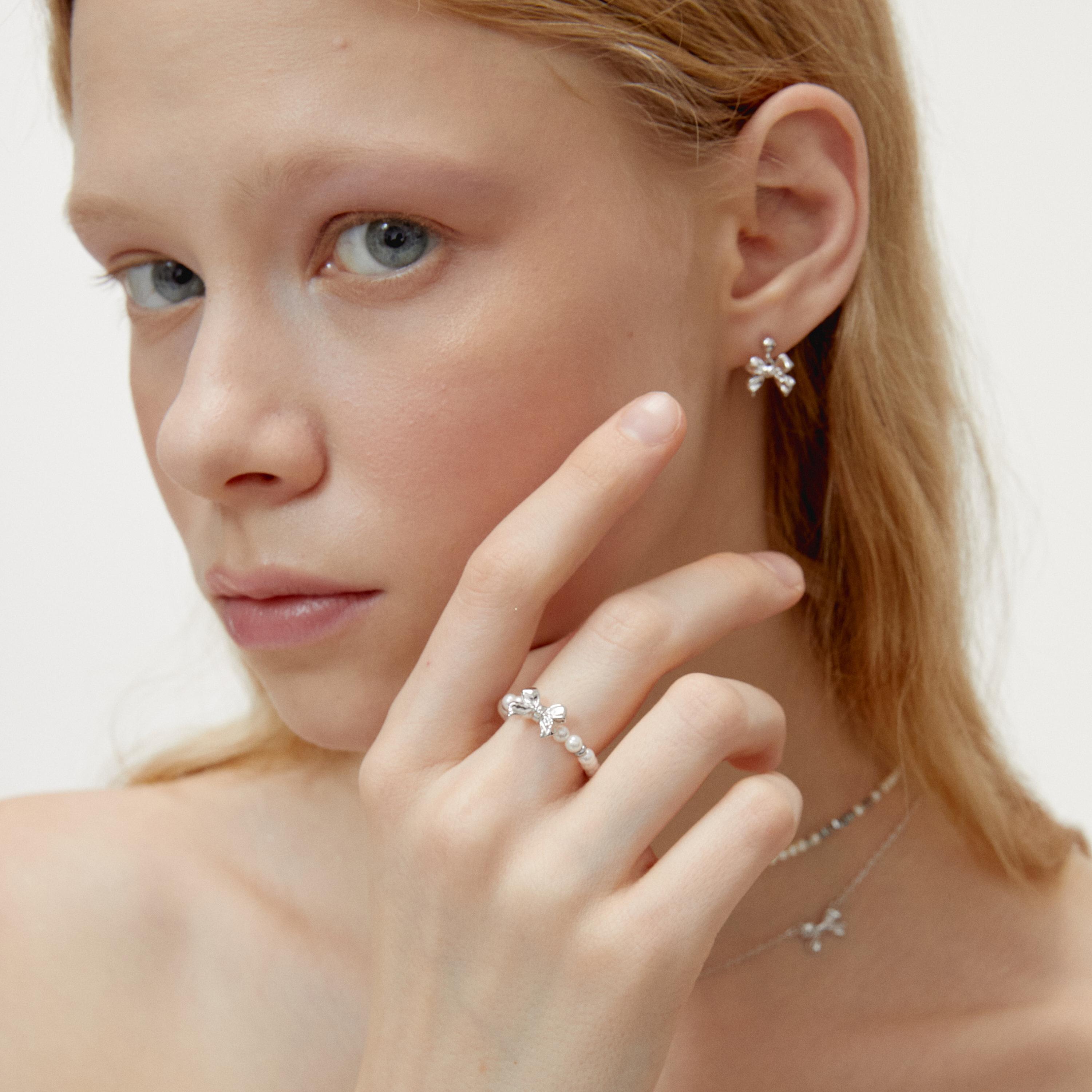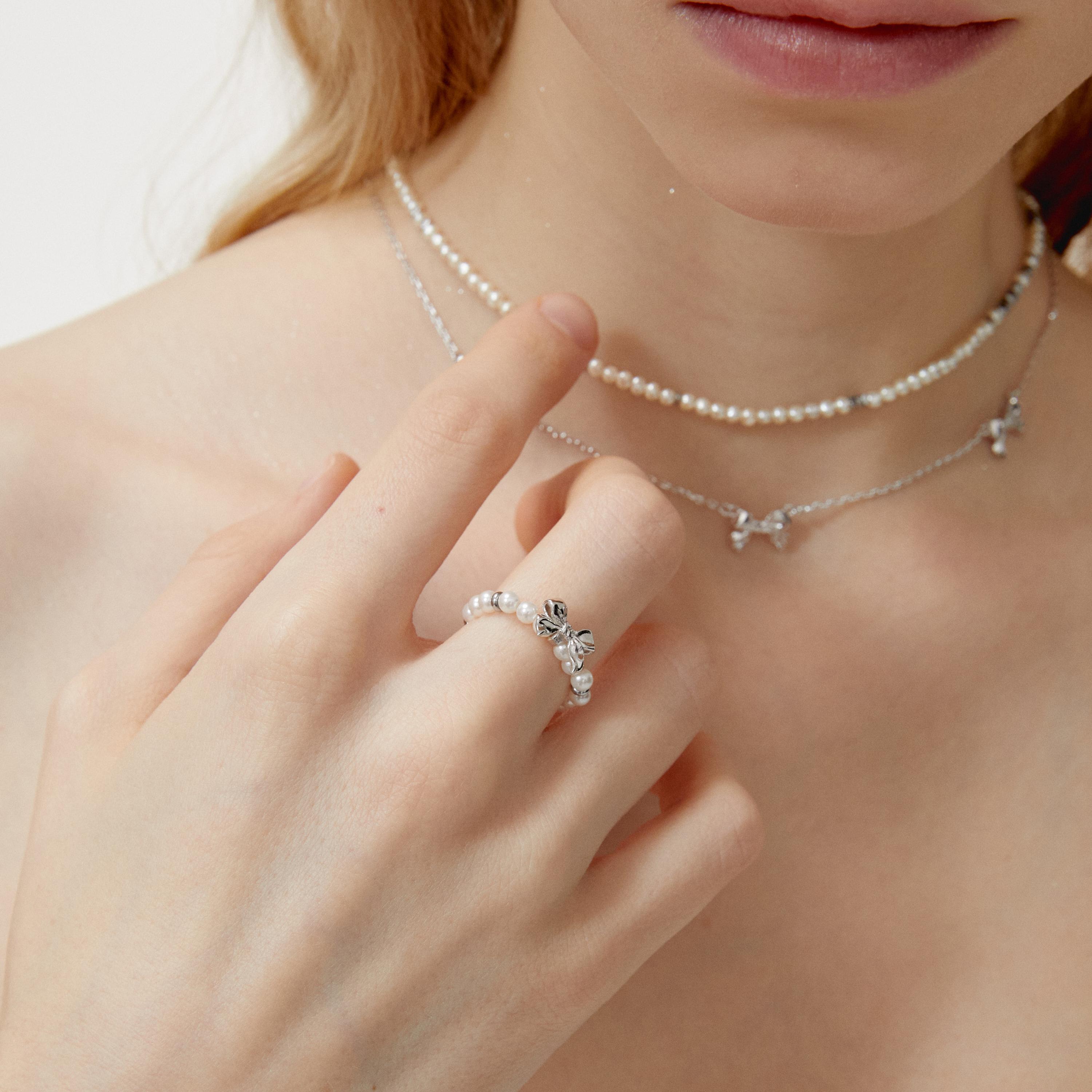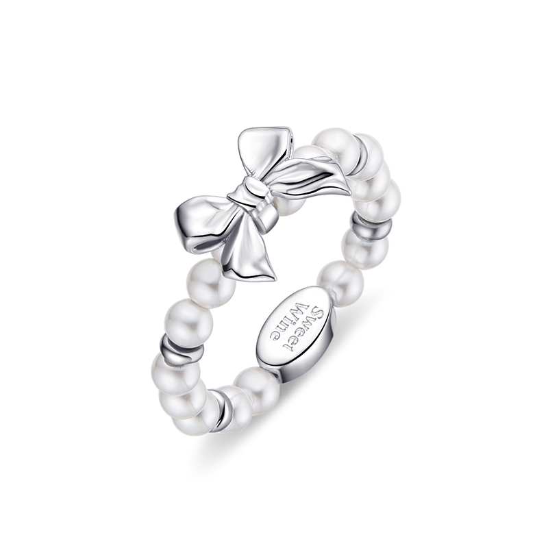 Sweet Wine 迷你蝴蝶结串珠弹力戒指设计师小众风格高级感饰品