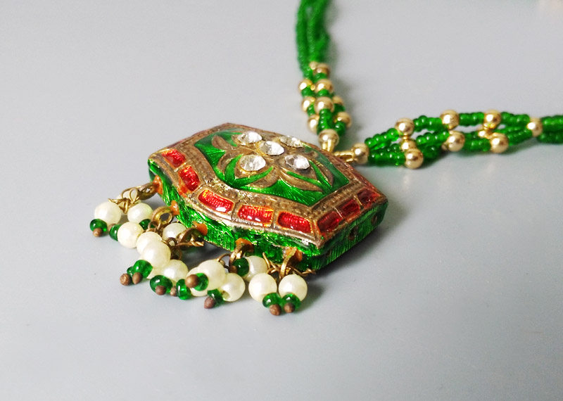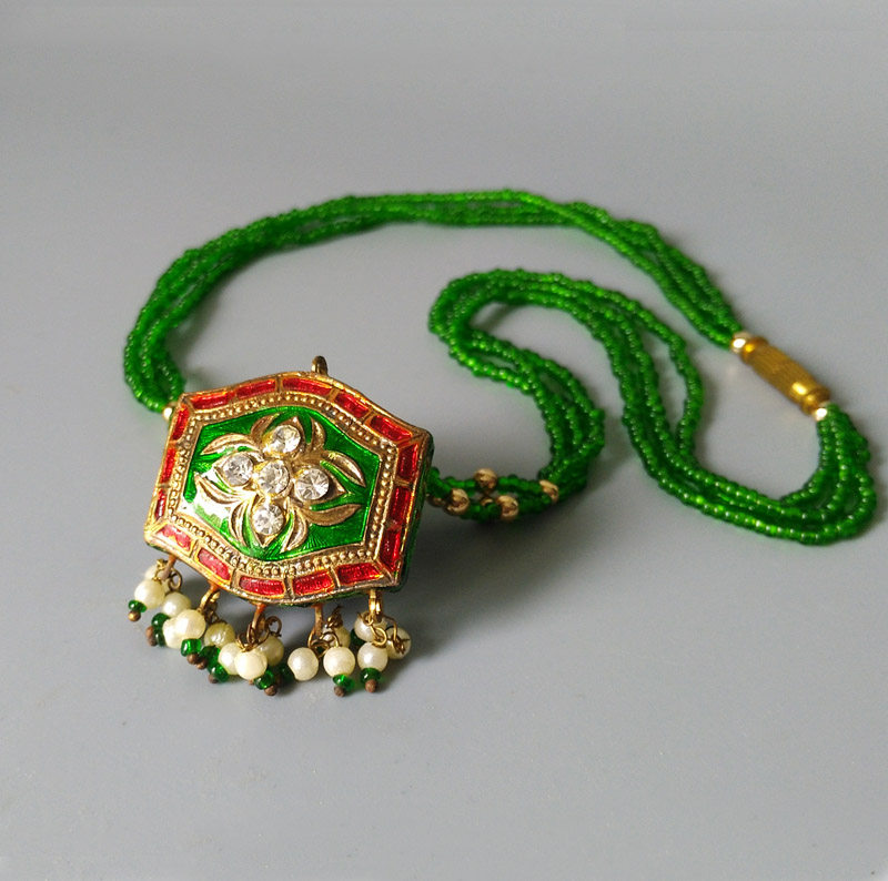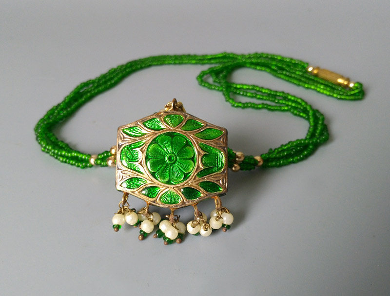 波西米亚民族风首饰绿色系花卉清新异域珐琅釉流苏琉璃短款项链女