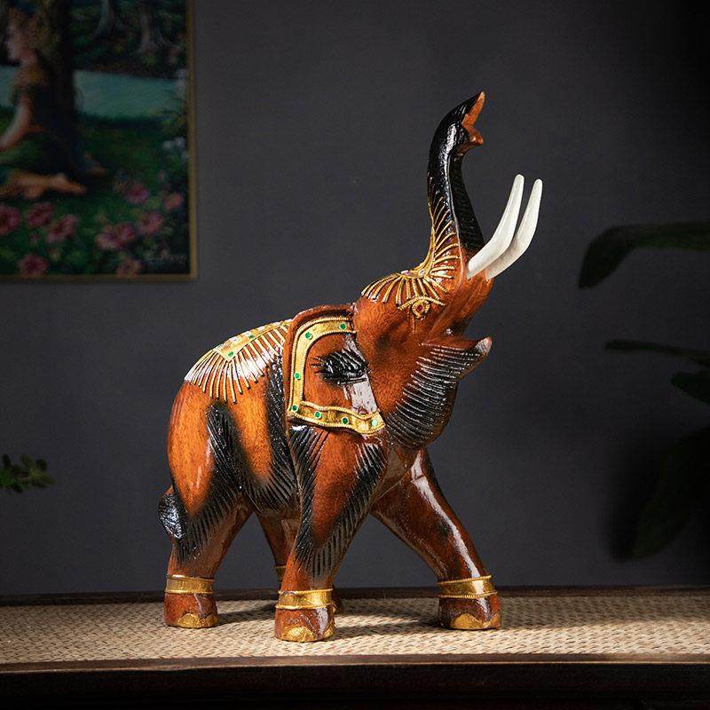 泰国整木雕刻大象摆件实木大象客厅桌面摆设玄关博古架电视柜装饰