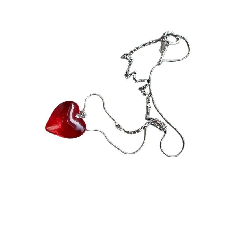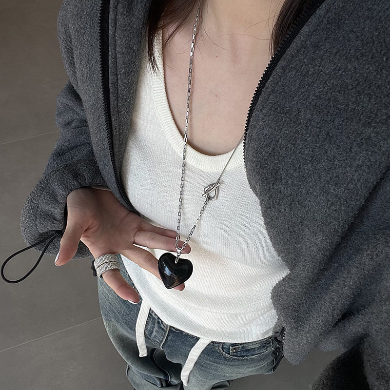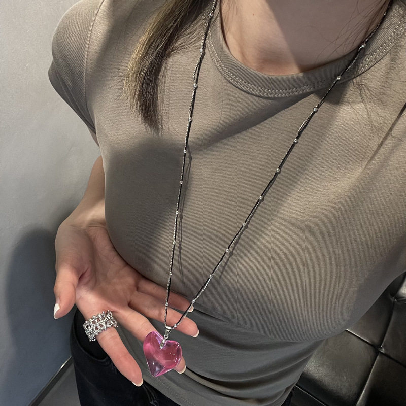 钛钢不掉色长款项链爱心透明小众设计款辣妹可调节颈链毛衣链挂脖