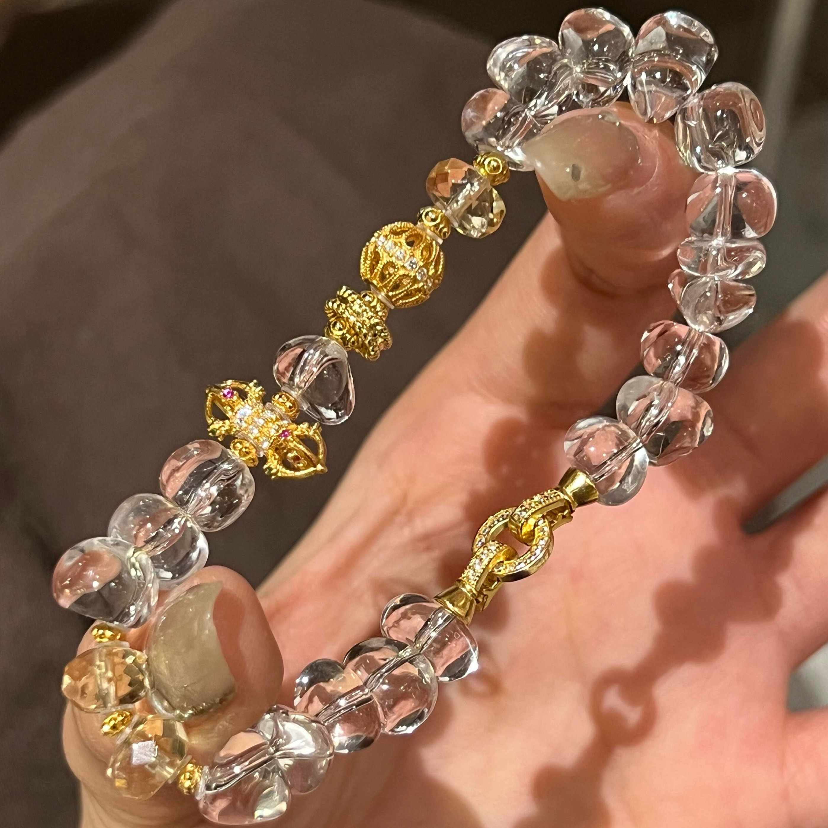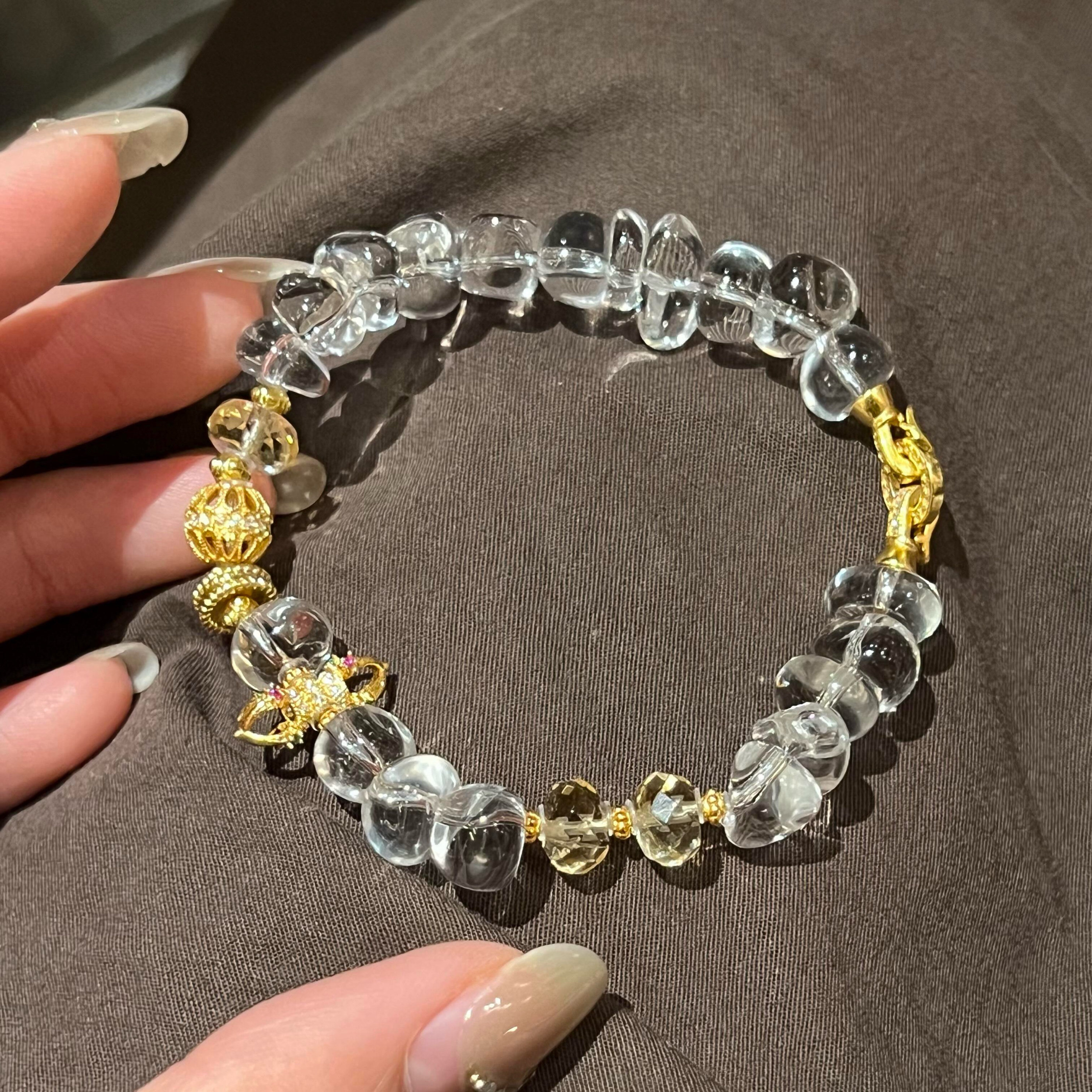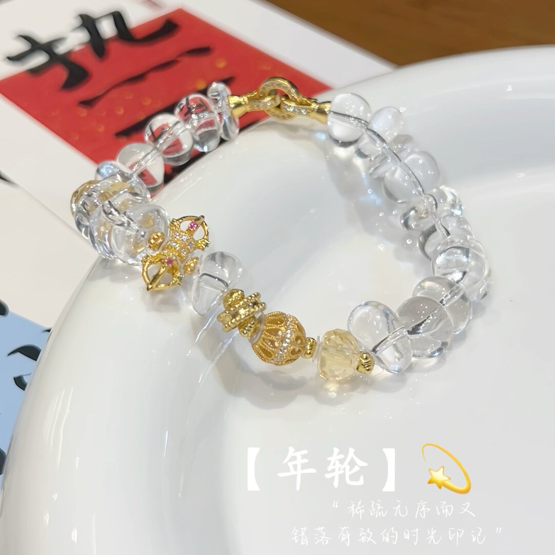 10A净体天然白水晶碎石年轮白水晶随行珠银镀金古法原创手串手链