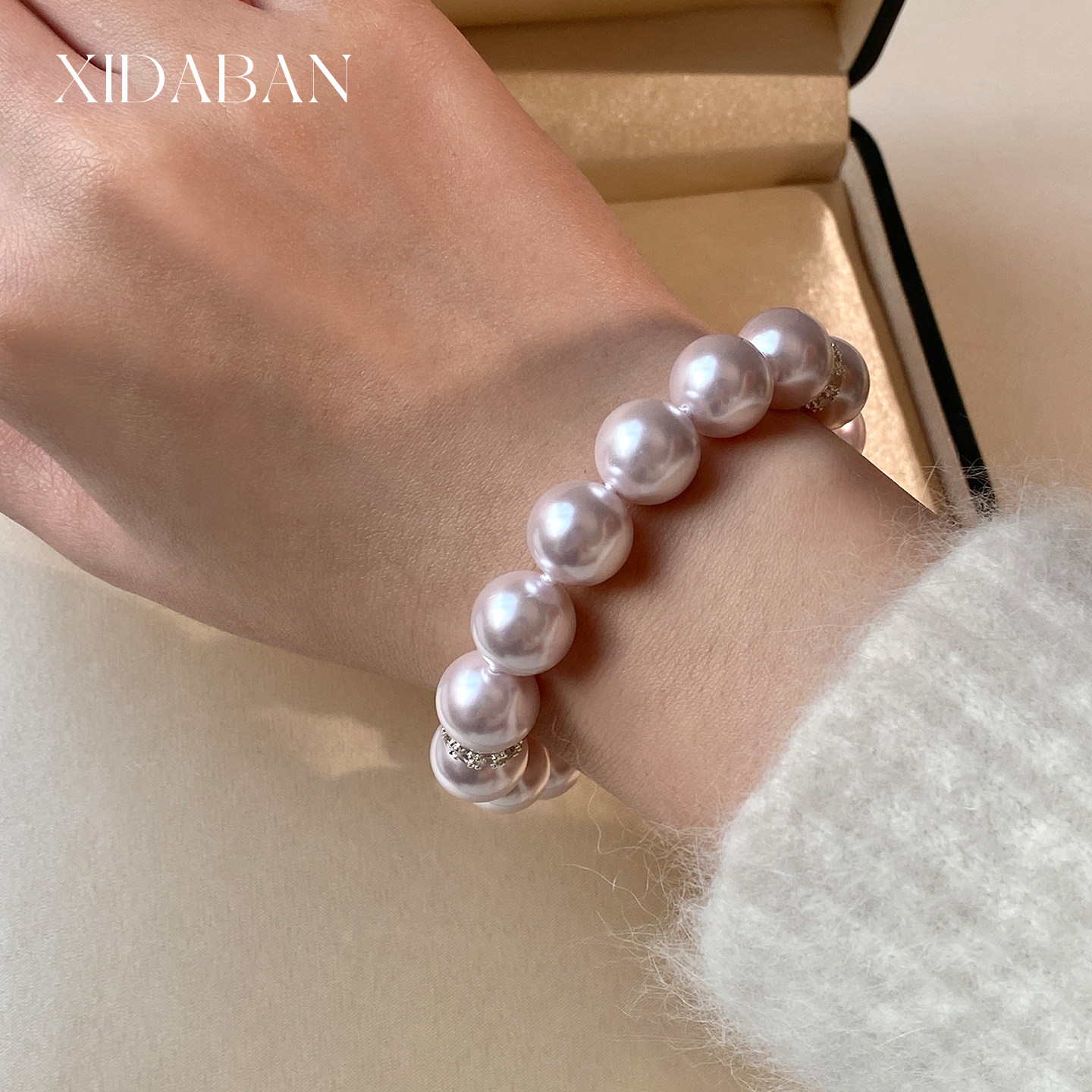 当前位置:首页>商品详情>西大班深海澳母贝珍珠手链曼塔玫瑰粉紫色手串法式轻奢高级感手饰