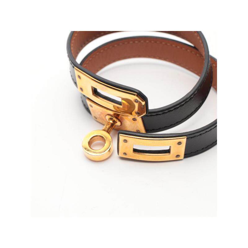 中古Hermes爱马仕女B级9新bracelet手镯牛皮手链黑色