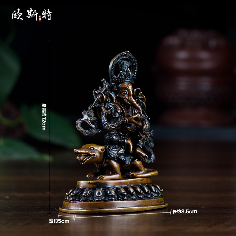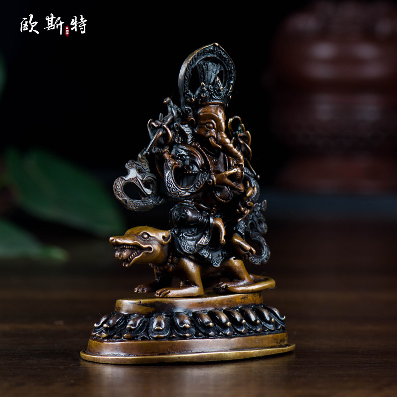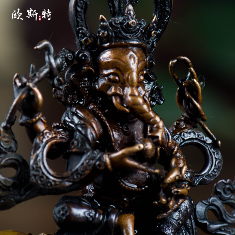 欧斯特 象鼻财神中式摆件 尼泊尔紫铜做旧手工工艺品小饰品铜像