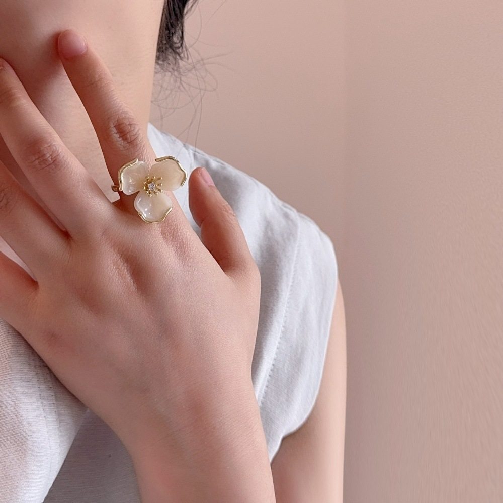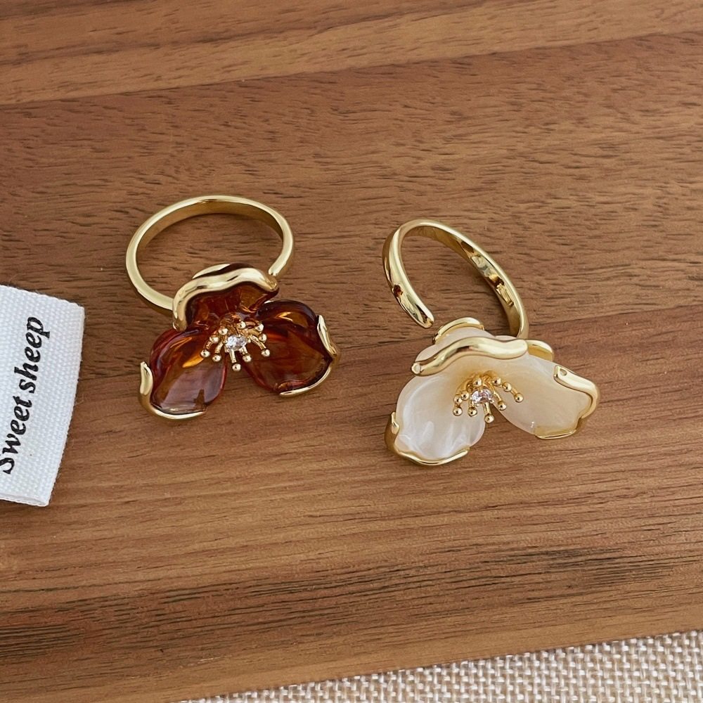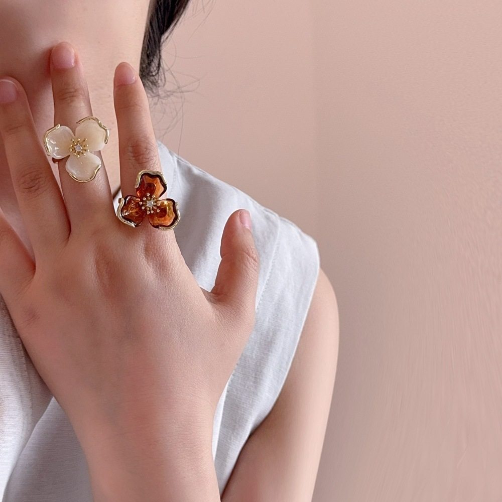 焦糖琥珀色树脂花朵戒指女时尚轻奢小众高级感食指指环戒子配饰品