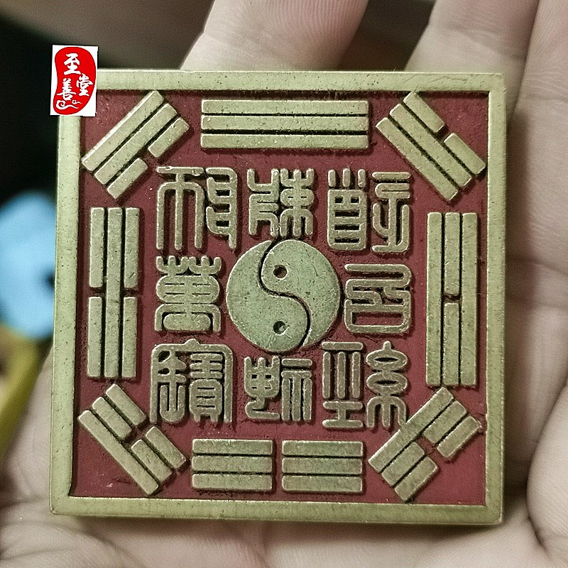 古玩收藏黄h铜朱砂铜印八卦敕召万神铜印章扭印