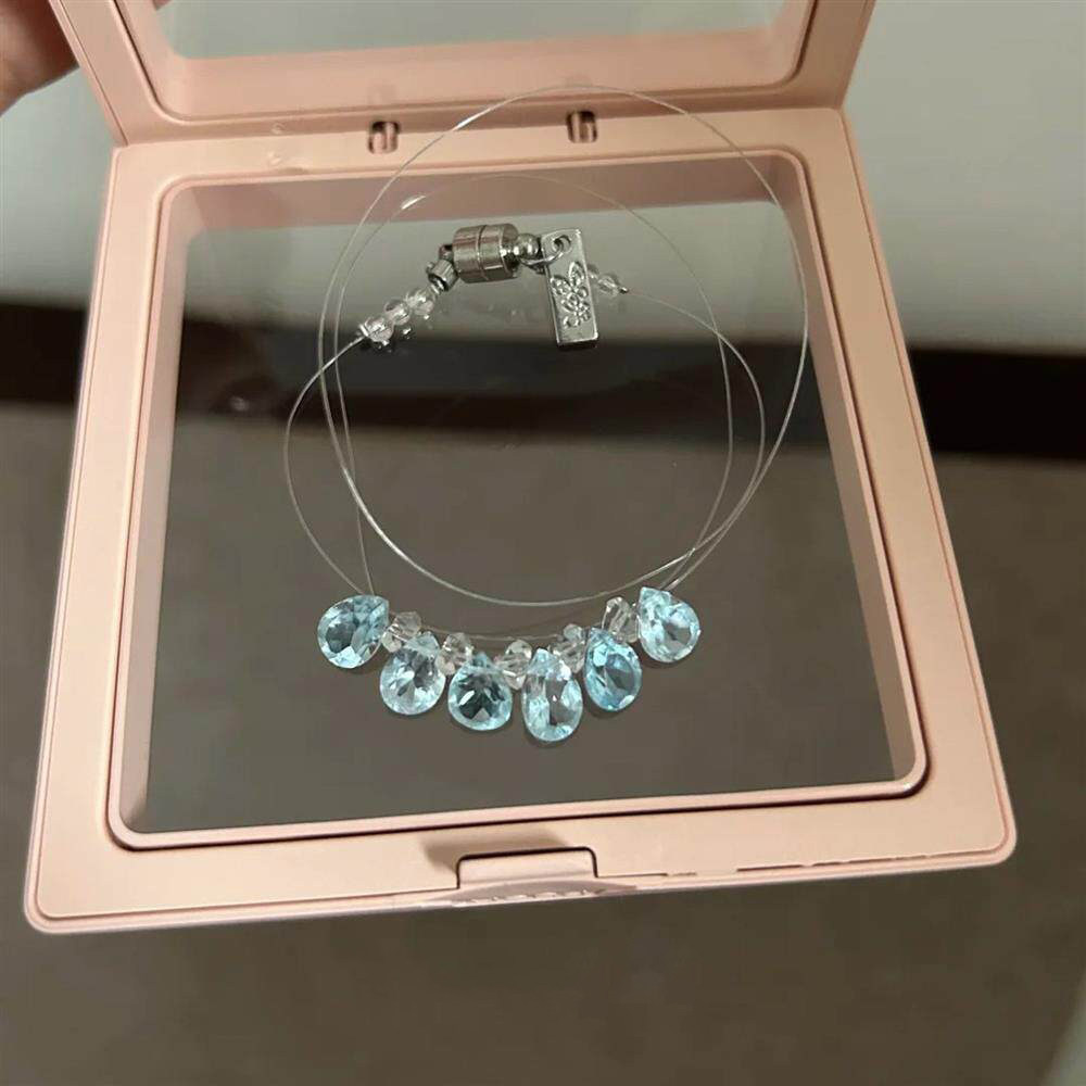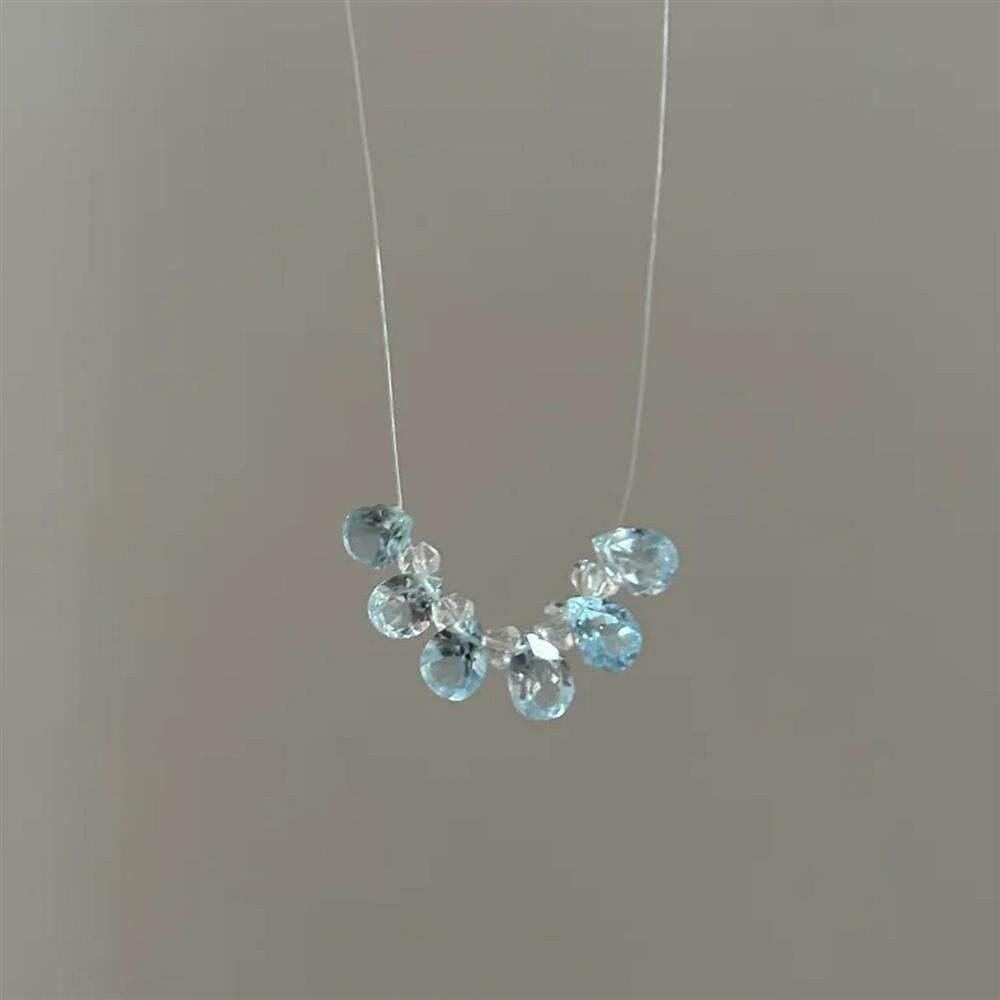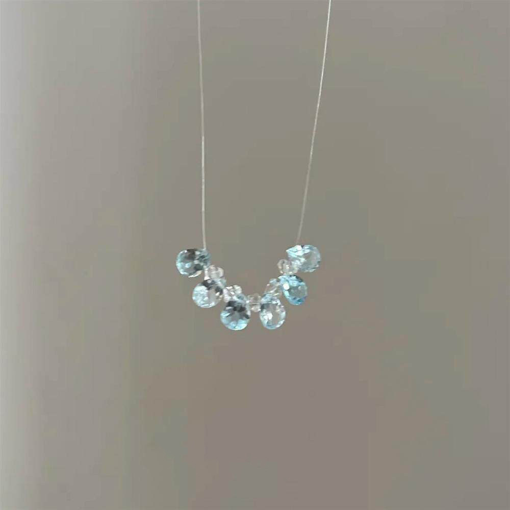 清透海蓝色水滴项链女2026新款轻奢小众设计鱼线锁骨颈链精致配饰