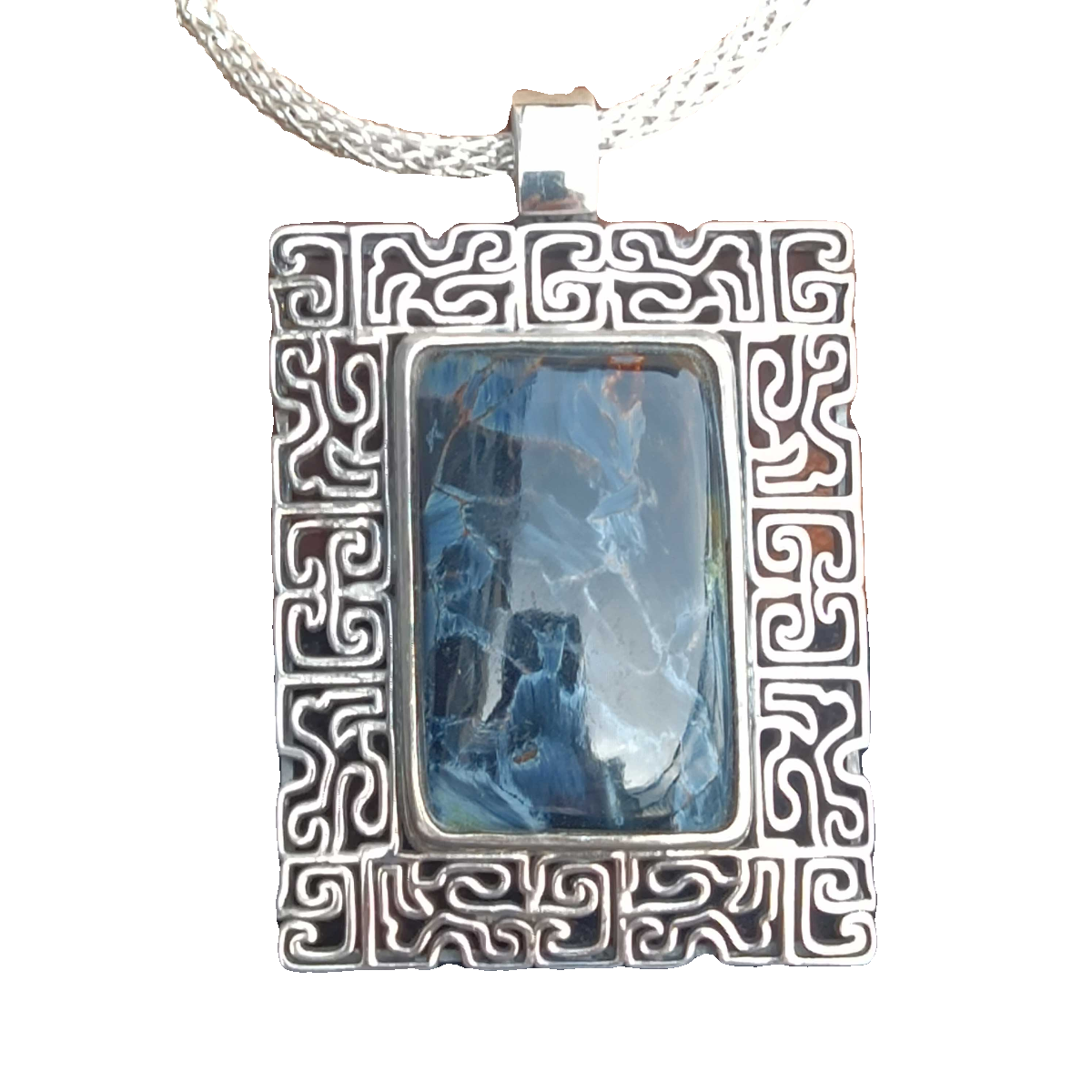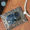 五宝町原创中式仿古青铜纹暴风雨石彼得石银吊坠银项链老钱风
