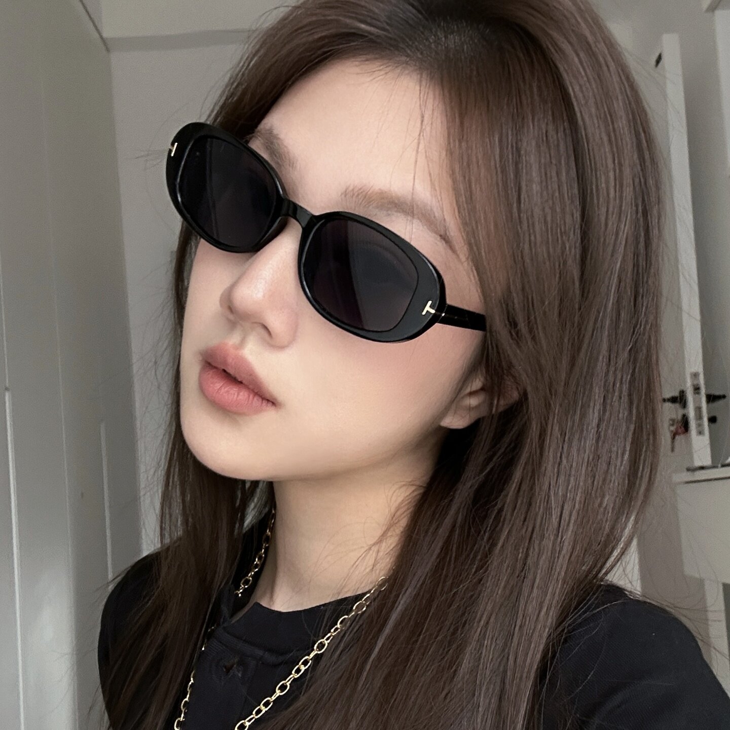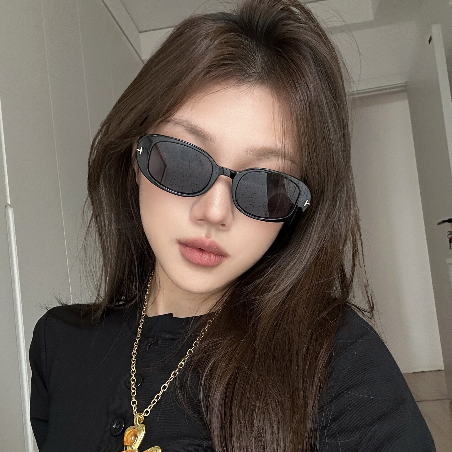 2026春夏复古黑色椭圆猫眼T字墨镜韩女大框方脸显瘦高级感太阳镜