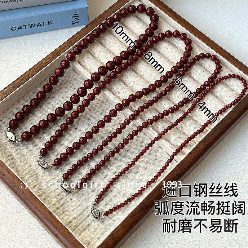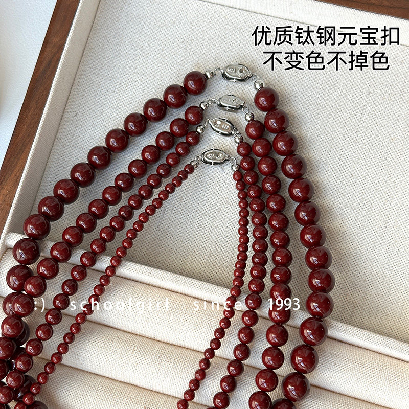 2025年新款爆款安可拉红酒红色串珠项链不掉色显白高级感锁骨链