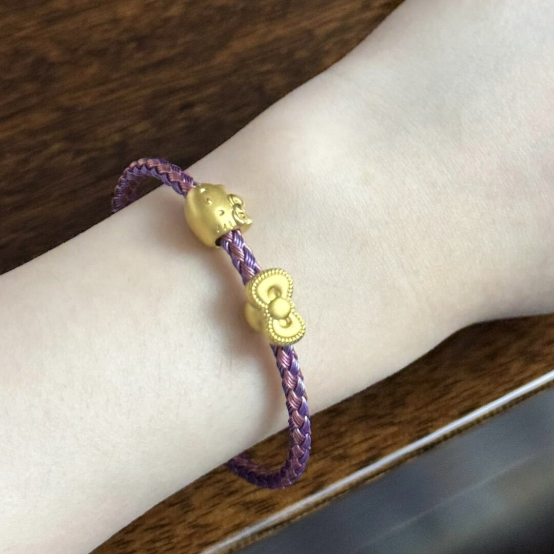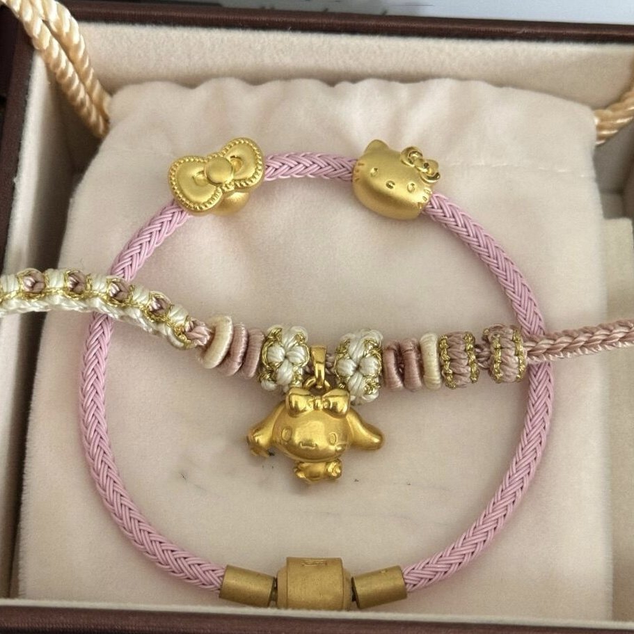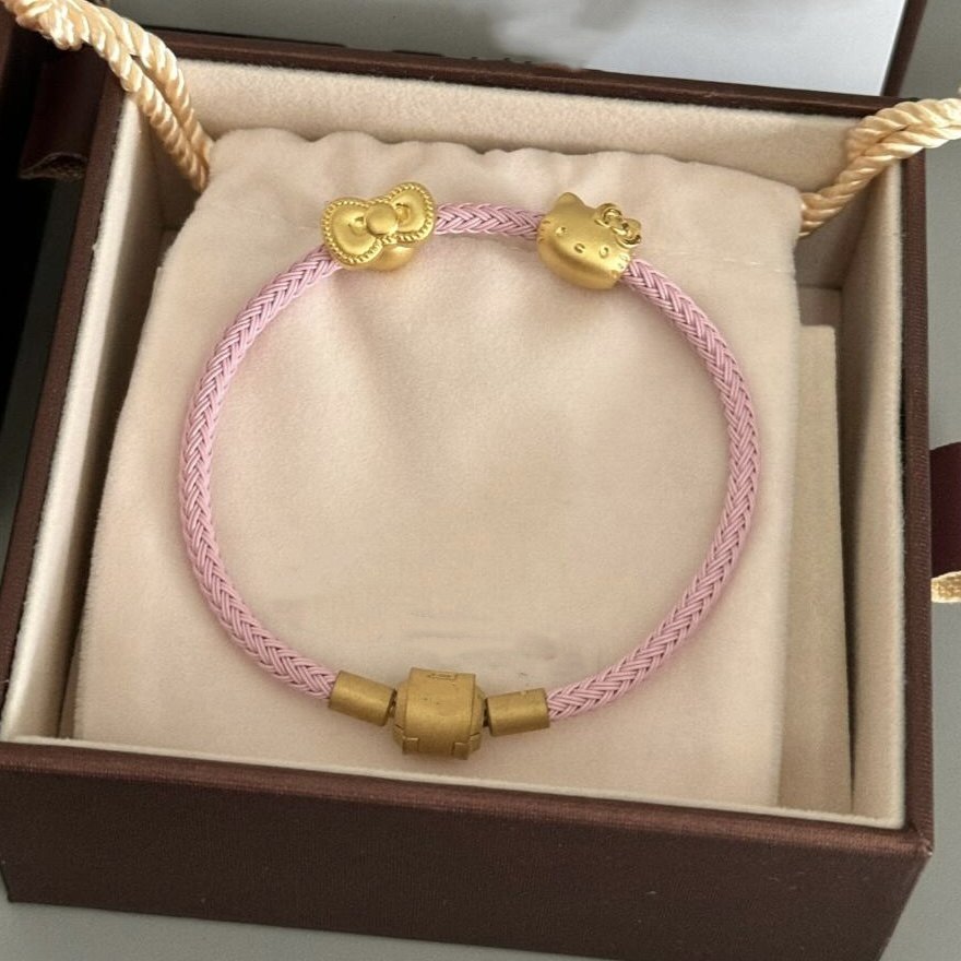 新款足金999hello kitty手链黄金猫头蝴蝶结转运珠送女友七夕礼物
