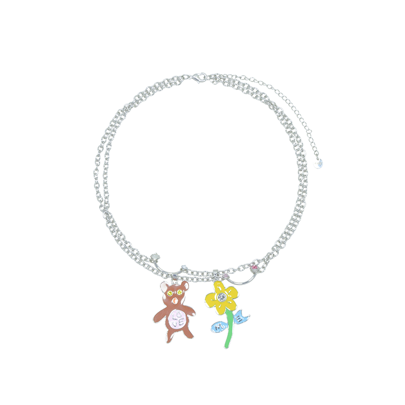 AWE卡通小熊love字母花朵叠戴项链文韬童禹坤同款钛钢锁骨链女