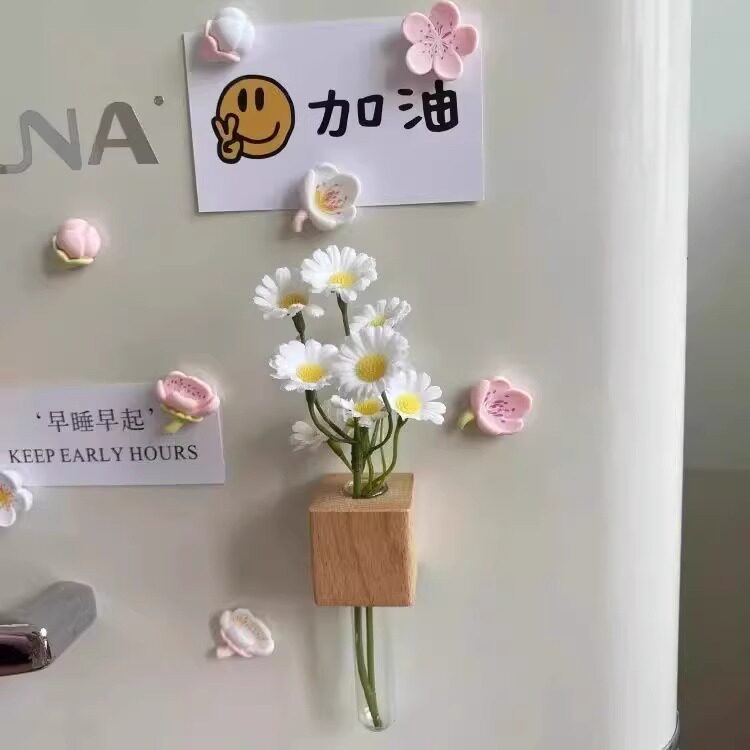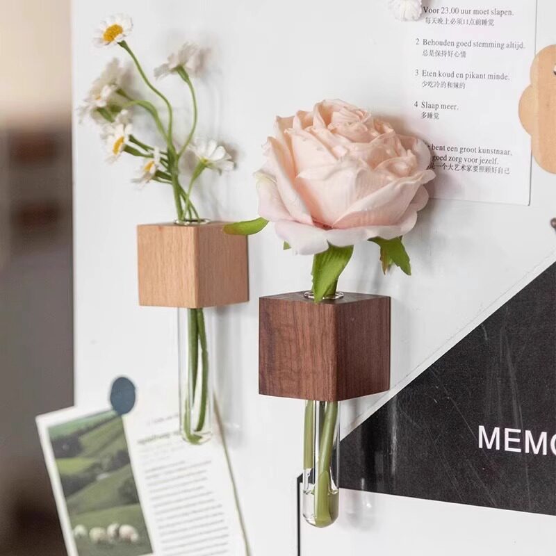2025新款实木插花器磁吸冰箱贴新款创意车载装饰磁贴插花瓶高级感