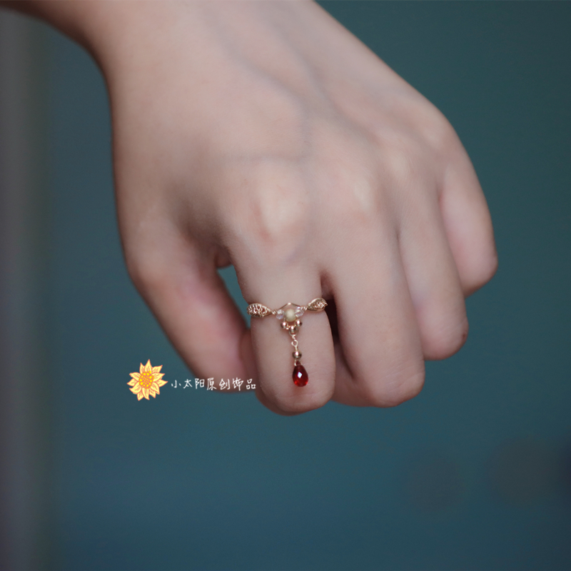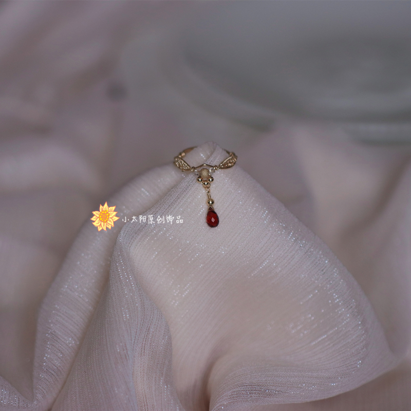 太阳原创设计 精致复古小众天然石榴石水晶戒指美国14K注金可水洗