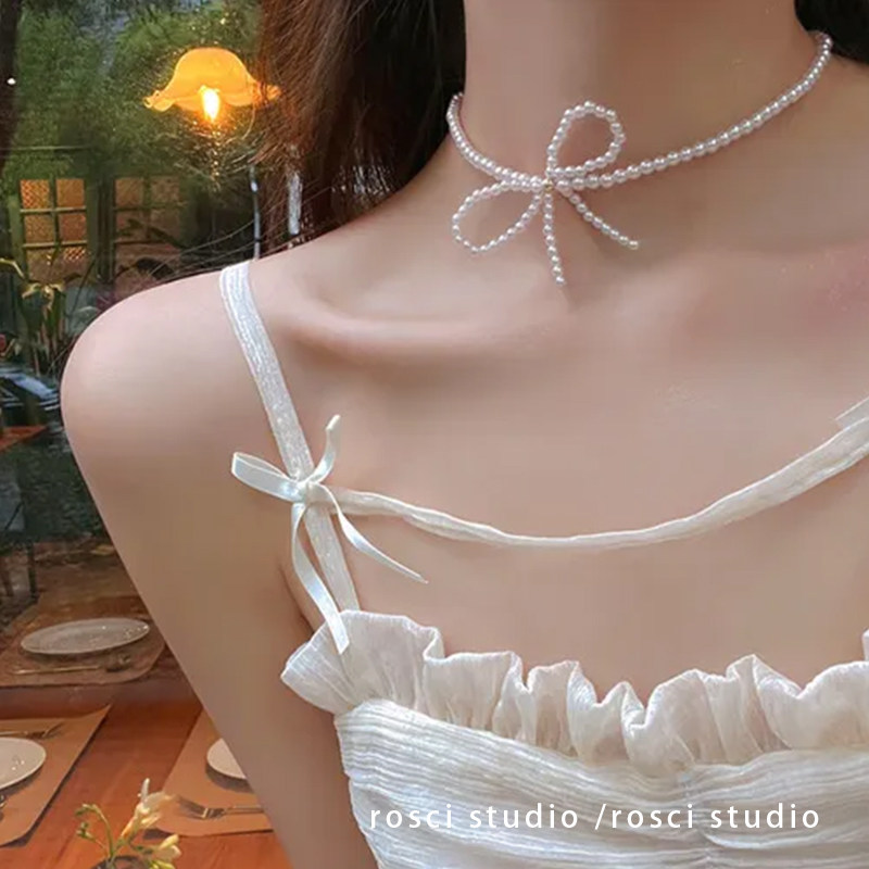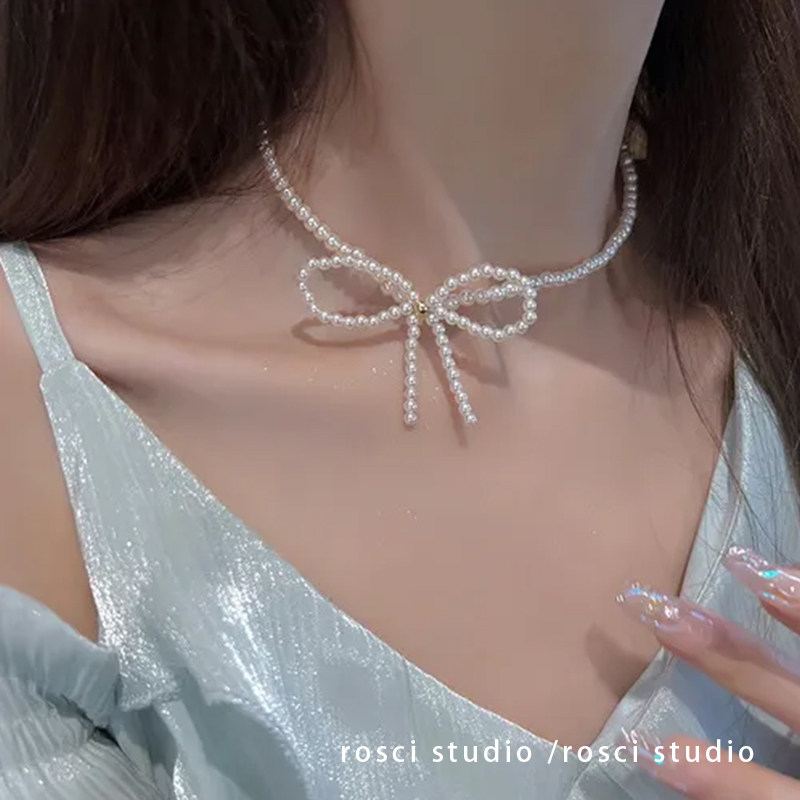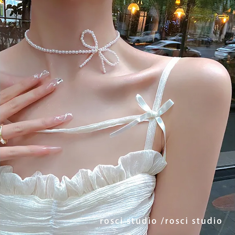 轻奢小众珍珠蝴蝶结项链甜美锁骨链超仙简约项圈夏季气质脖子颈链