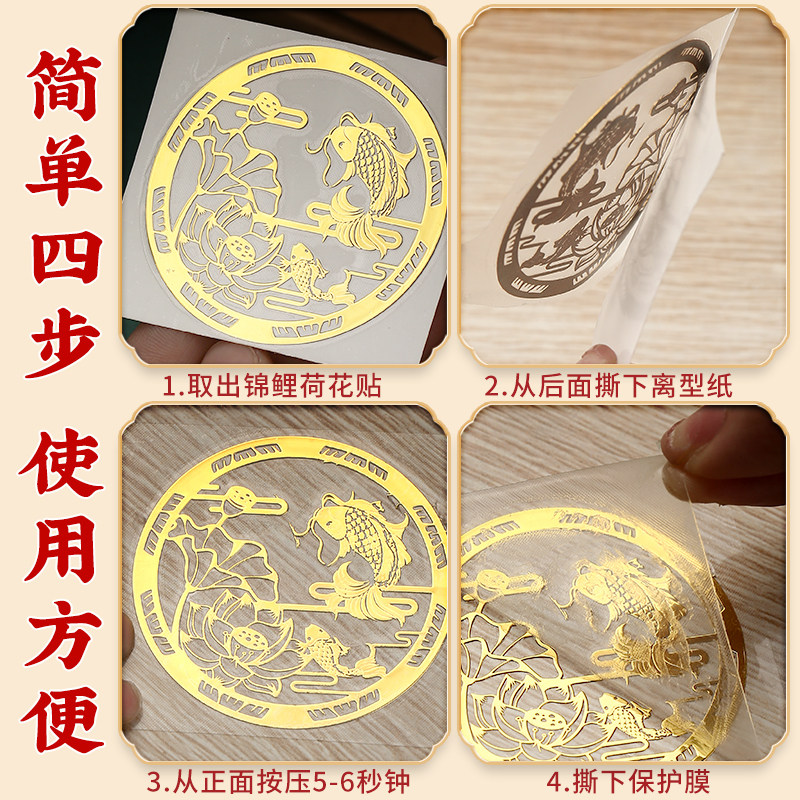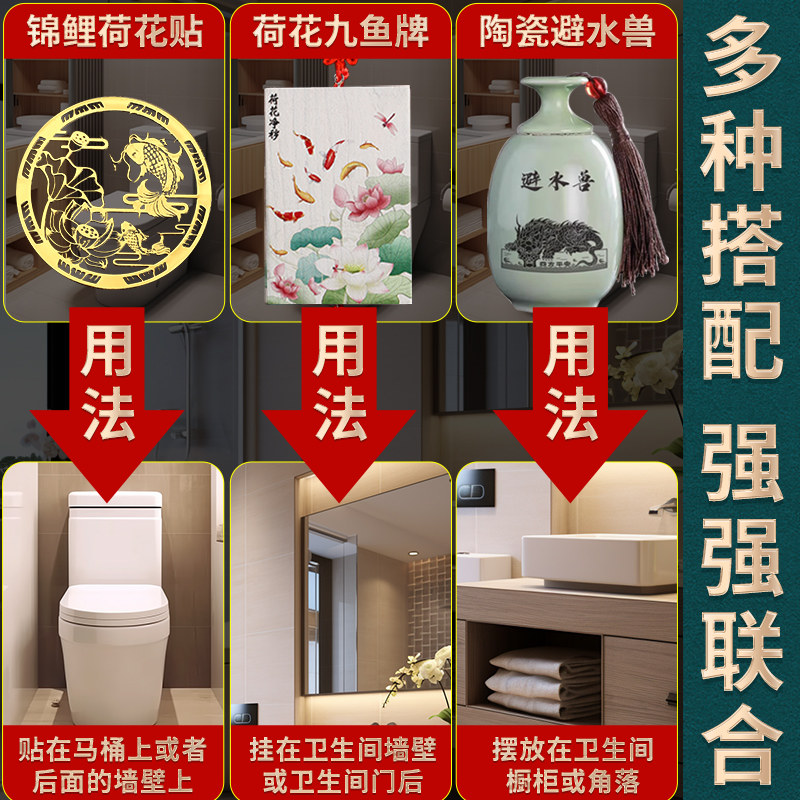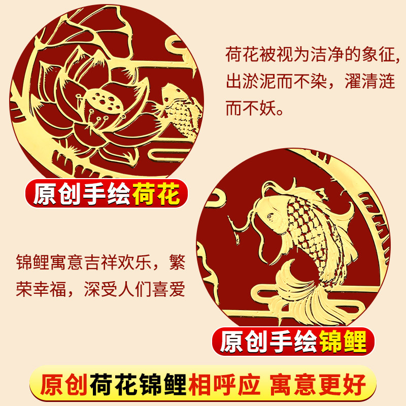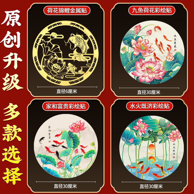 荷花鲤鱼净秽莲花鲤鱼图正品卫生间金属化贴纸转好韵解卫生间摆件